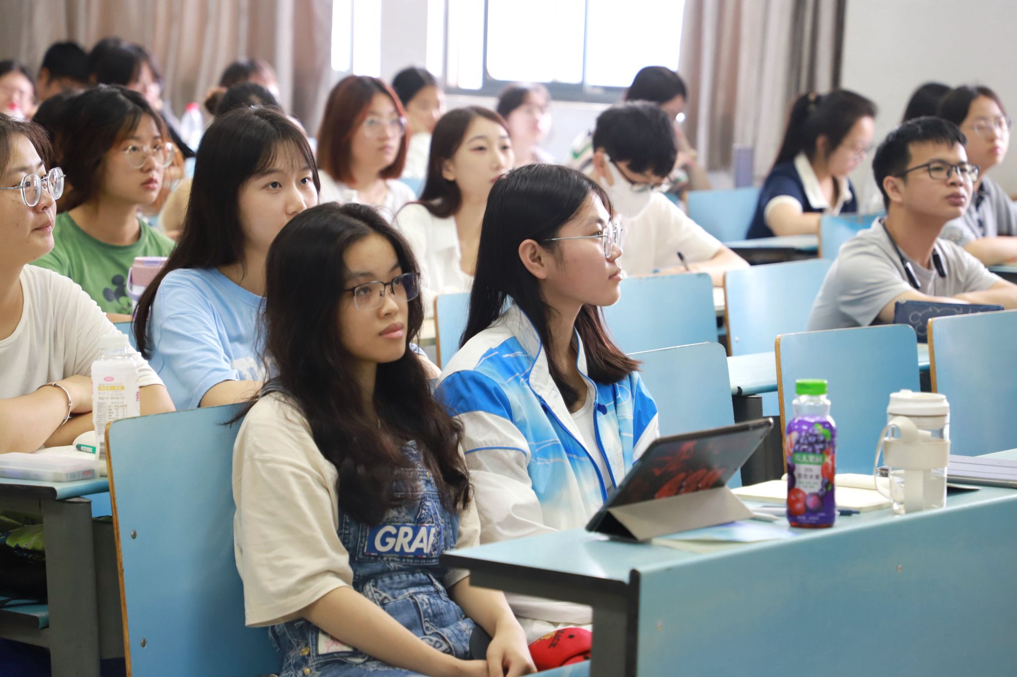 校园课堂内外,师生展现出了良好的精神风貌。任课教师教学准备充分、方法新颖,同学们精神饱满、认真听课,师生互动良好,课堂气氛活跃,教学秩序井然。
