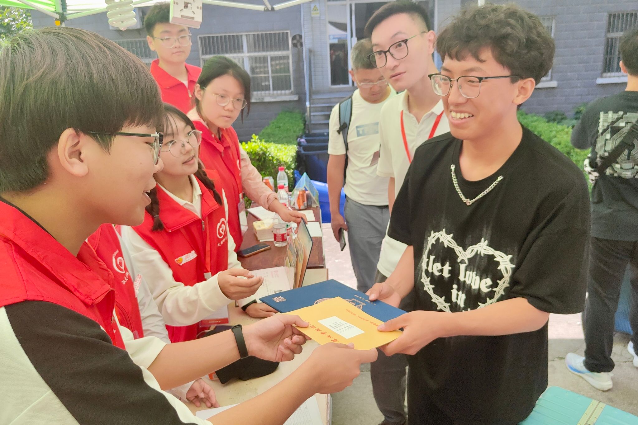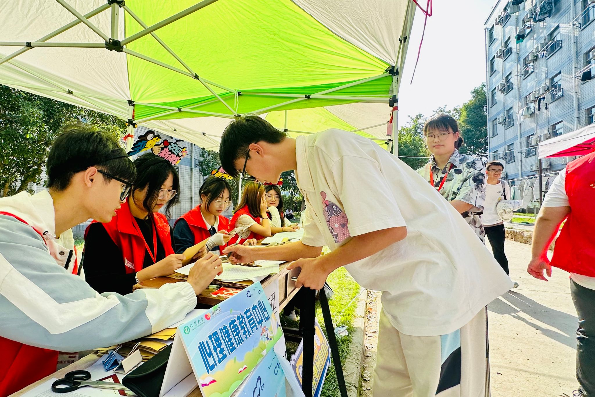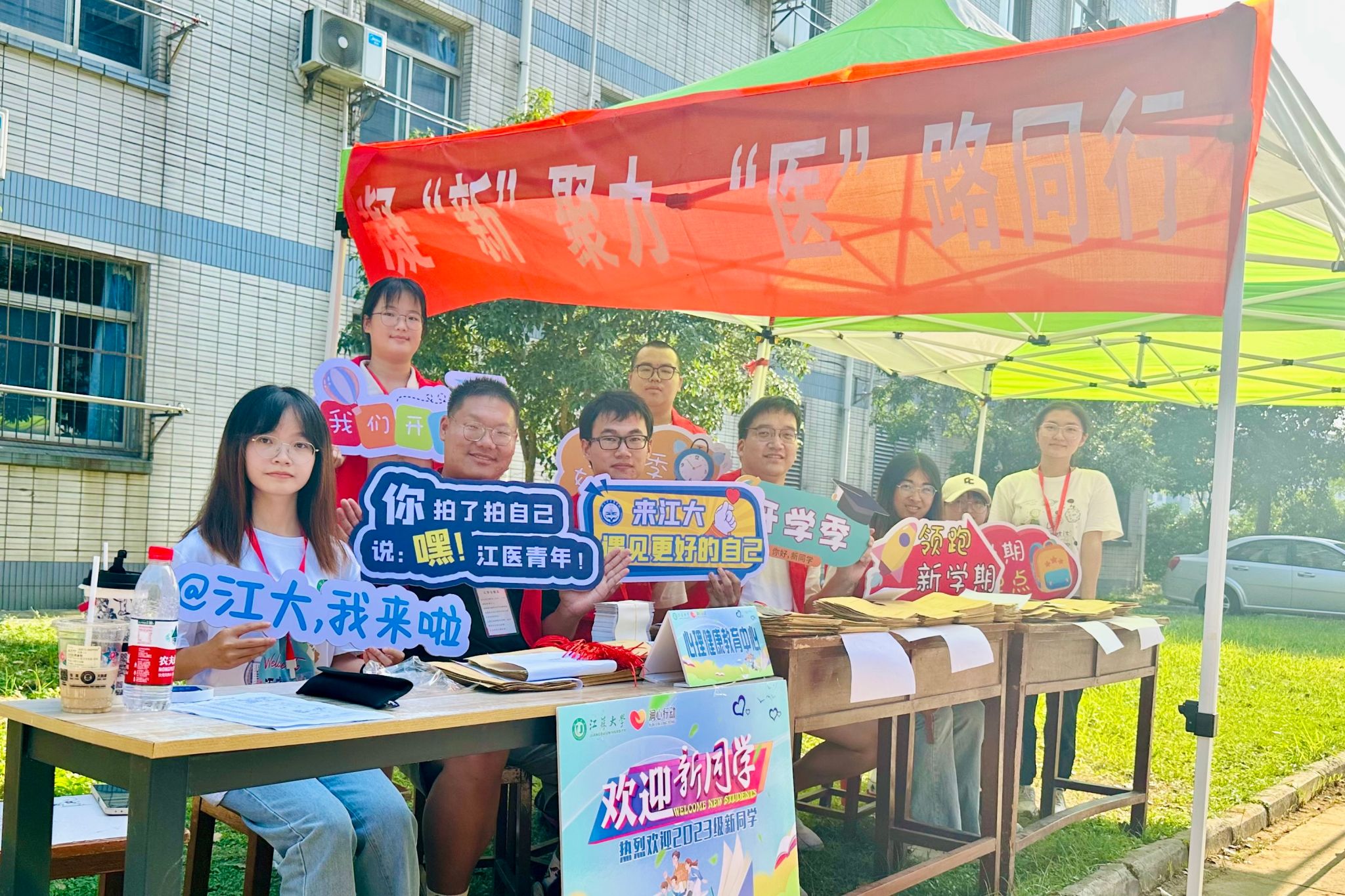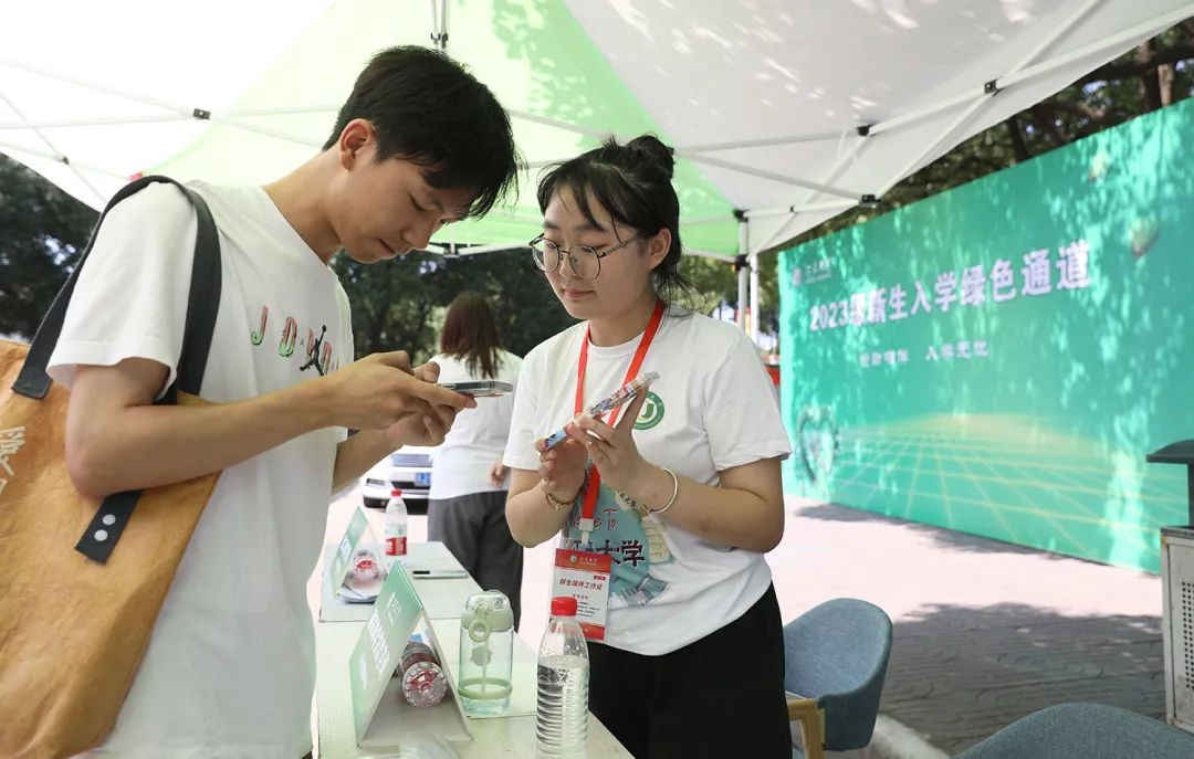 炎炎烈日下,千余名师生志愿者分布在车站、校车、宿舍区、咨询点、交通干道等,以饱满的精神状态服务新生办理报到流程,耐心解答疑问,成为迎新工作的一道靓丽风景线。