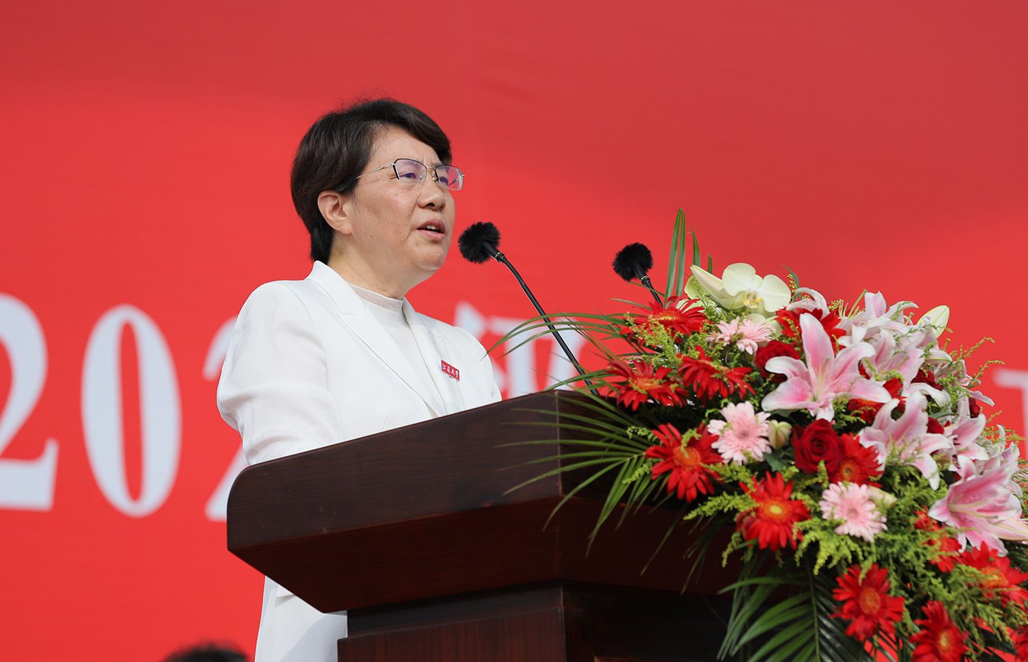 典礼上,校长邢卫红讲话,代表学校向全体2023级新生表示热烈欢迎,向辛勤指导训练的军训教官致以崇高敬意。邢卫红说,开云电子入口_开云(中国)历史悠久、底蕴深厚,鸿儒云集、人才辈出,特色鲜明、使命光荣,同学们在这里求学逐梦,故事会更加精彩,将来大有可为。邢卫红用三句话与全体新生共勉:一是“博学”,把学习作为第一任务,在博学善思中筑牢成长根基;二是“求是”,把创新作为第一本领,在求是探索中增长智慧才干;三是“明德”,把人品作为最高学历,在明德笃行中担当时代大任。邢卫红希望全体新生惜时如金、晴耕雨读,在“博学、求是、明德”校训和“自强厚德,实干求真”开云电子入口_开云(中国)精神指引下,创造更多精彩,成就美好将来。她也提出一个小希望:同学们要养成习惯,每天给家人报平安、与家人分享校园生活。