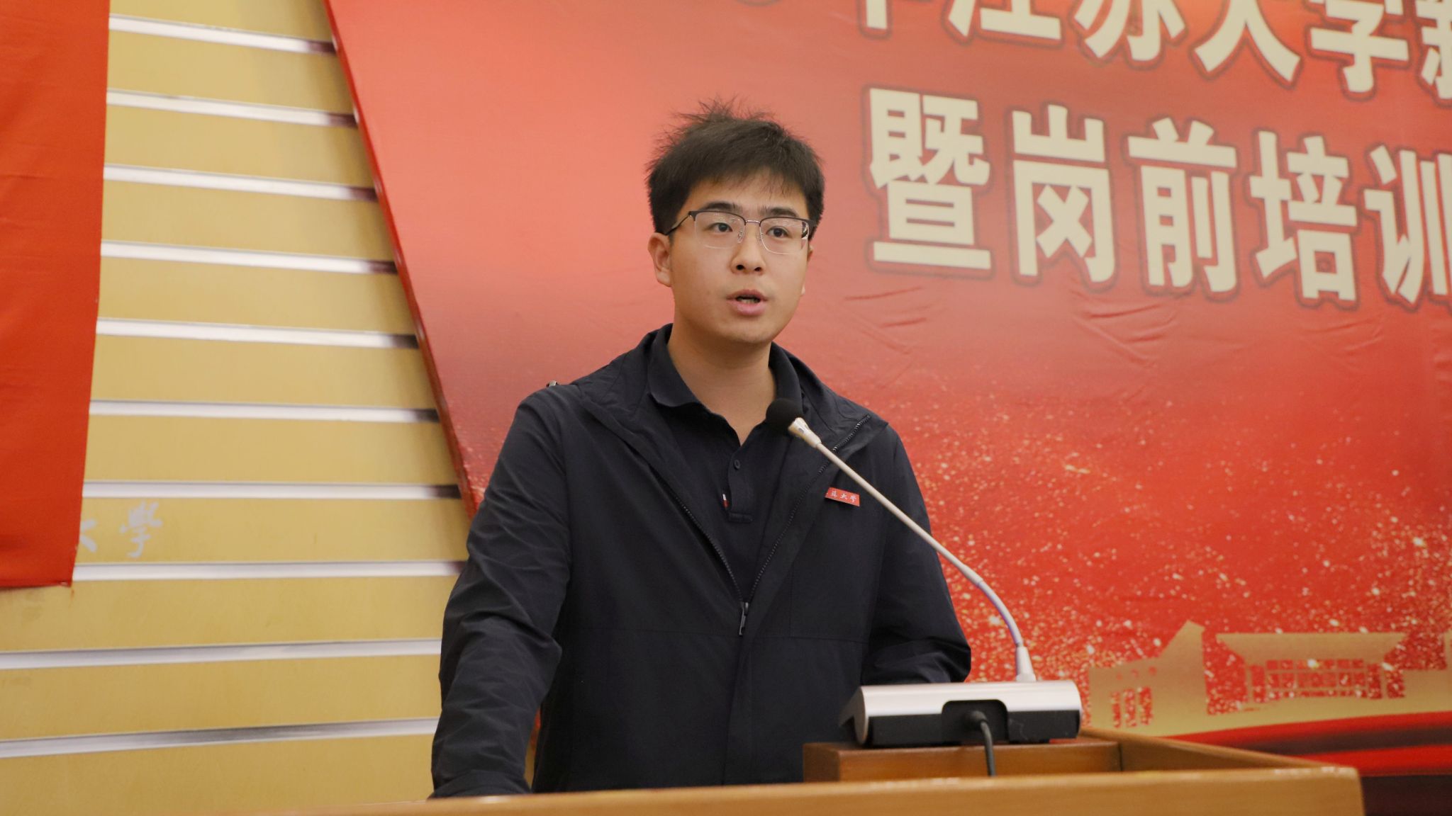 机械工程学院教师梁宇琛、能源研究院教师姜志锋分别代表新教师和中青年教师在仪式上发言。