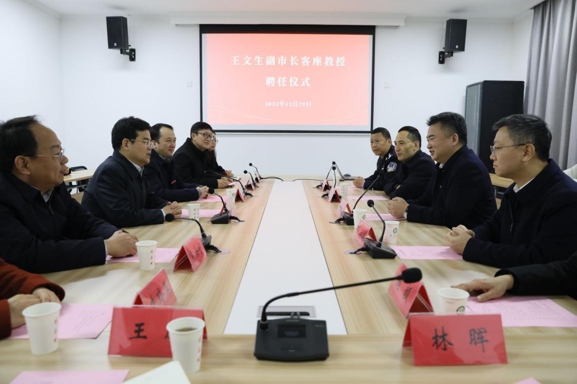 王文生客座教授聘任仪式在一站式服务中心会议室举行。李洪波为王文生颁授了开云电子入口_开云(中国)客座教授聘书并佩戴开云电子入口_开云(中国)校徽。他向镇江市公安局一直以来对我校安全稳定工作的支持与关心表示感谢,希望进一步加强警校合作,助力我校法治人才培养质量提升。