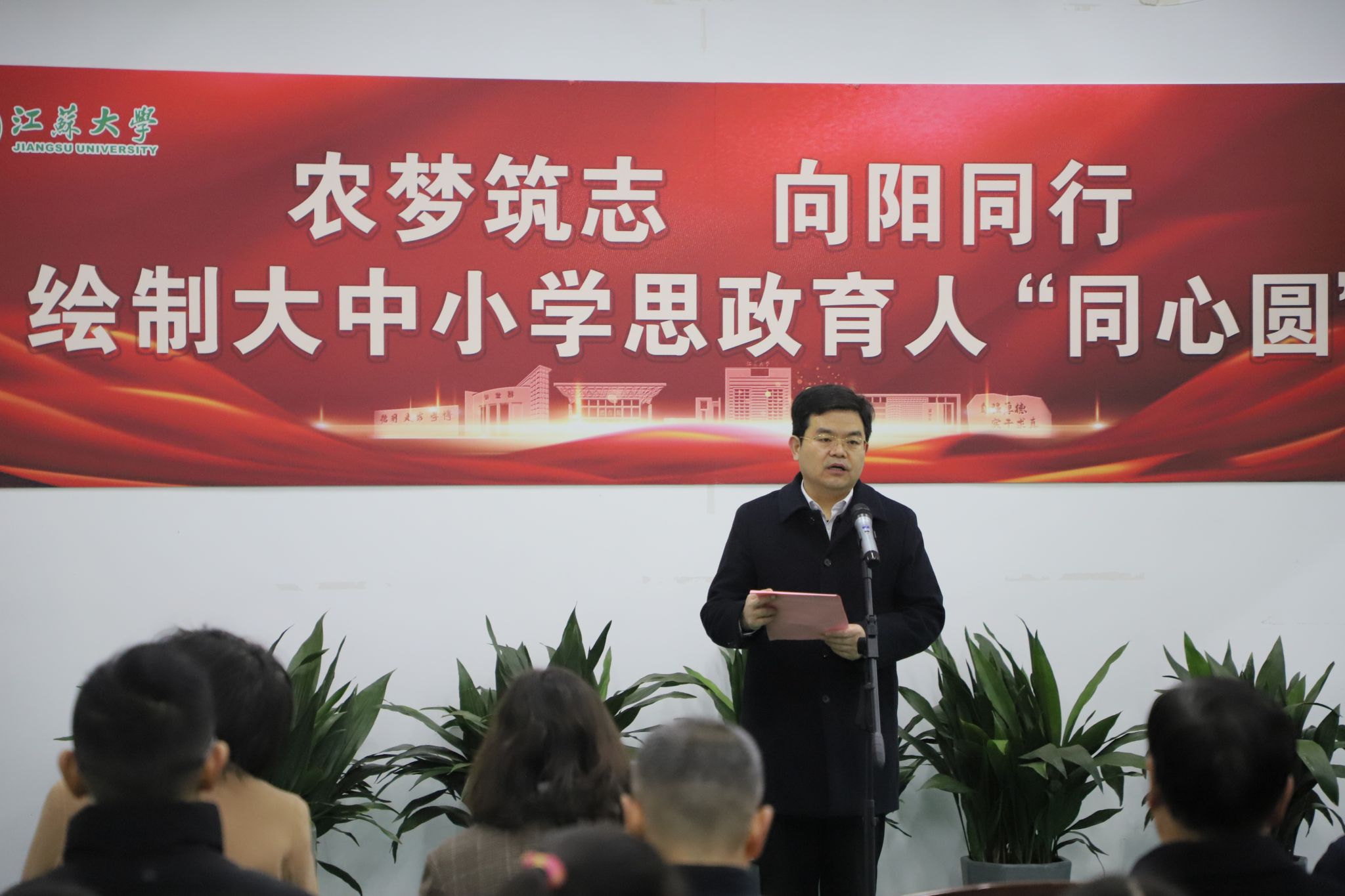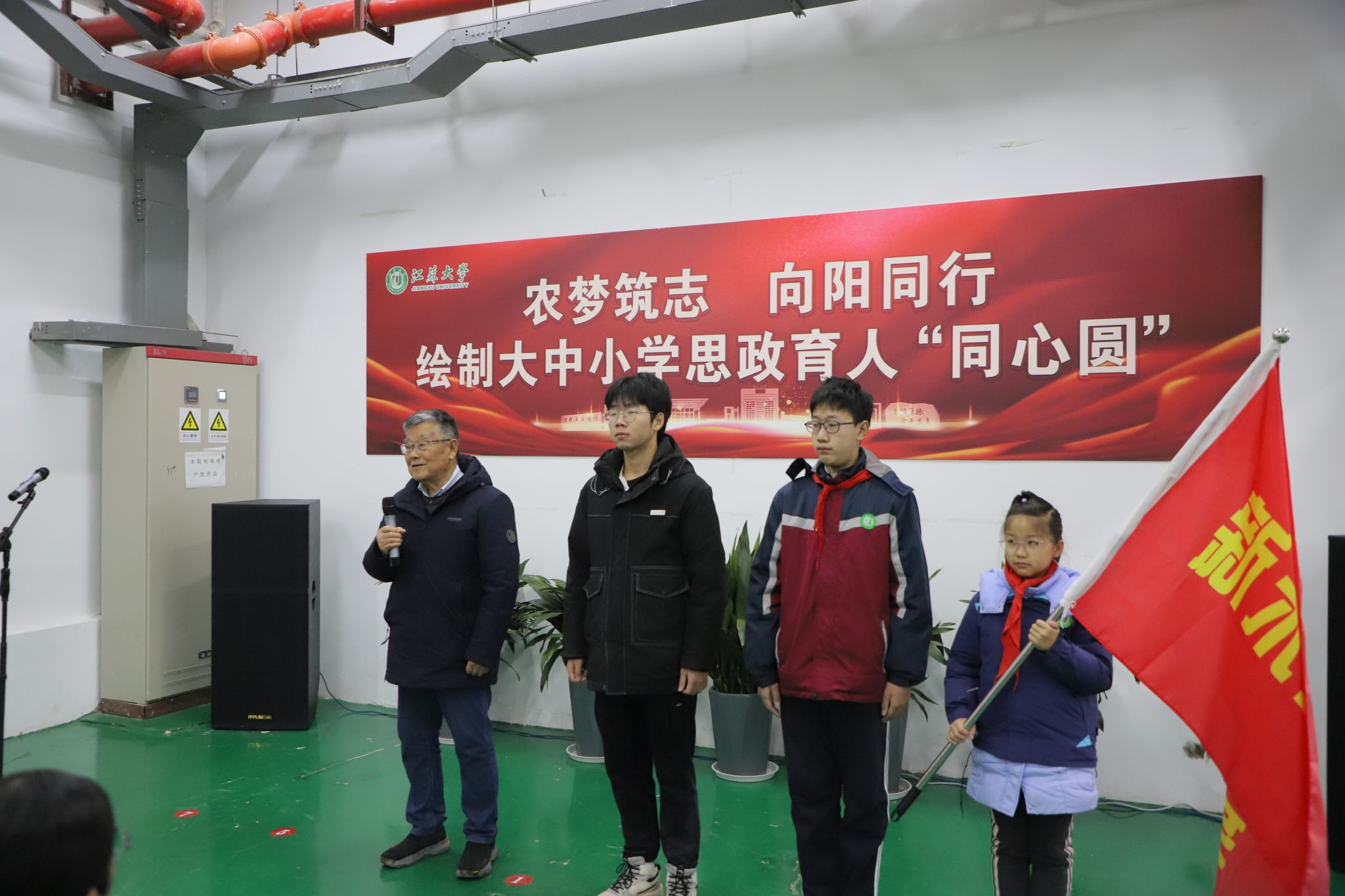 1月4日,由党委宣传部主办的“农梦筑志 向阳同行”绘制大中小学思政育人“同心圆”主题活动在耒耜大楼举行。“全国脱贫攻坚楷模”“时代楷模”赵亚夫,校党委书记李洪波,校党委常委、副校长李红,新华日报社镇江分社社长晏培娟,校党委常委、党委宣传部部长、党委统战部部长吴麟麟,以及镇江新区永兴农机机械化专业合作社、农业工程学院、马克思主义学院、思想政治工作研究院、开云电子入口_开云(中国)附属学校的师生代表参加活动。活动仪式由李红主持。