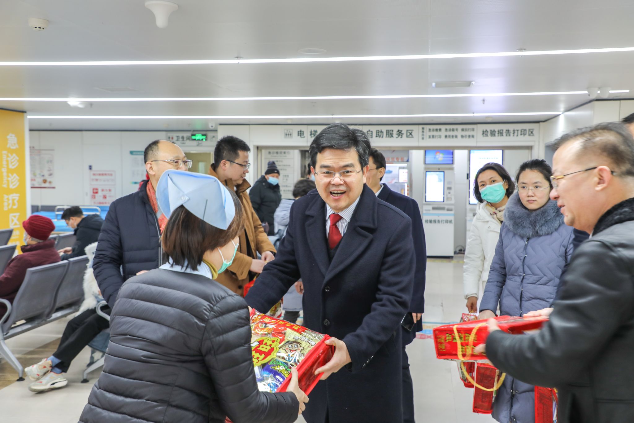 2月10日,农历大年初一,校党委书记李洪波,校党委副书记、附属医院党委书记张济建等来到学校附属医院,看望慰问春节期间依然坚守岗位的一线医务人员,向他们致以节日问候和新春祝福。