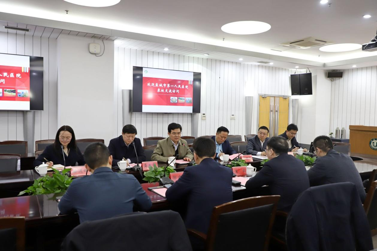 3月19日,盐城市第一人民医院党委书记王正一行来校访问交流。校党委书记李洪波、校党委副书记张济建接待了王正一行。