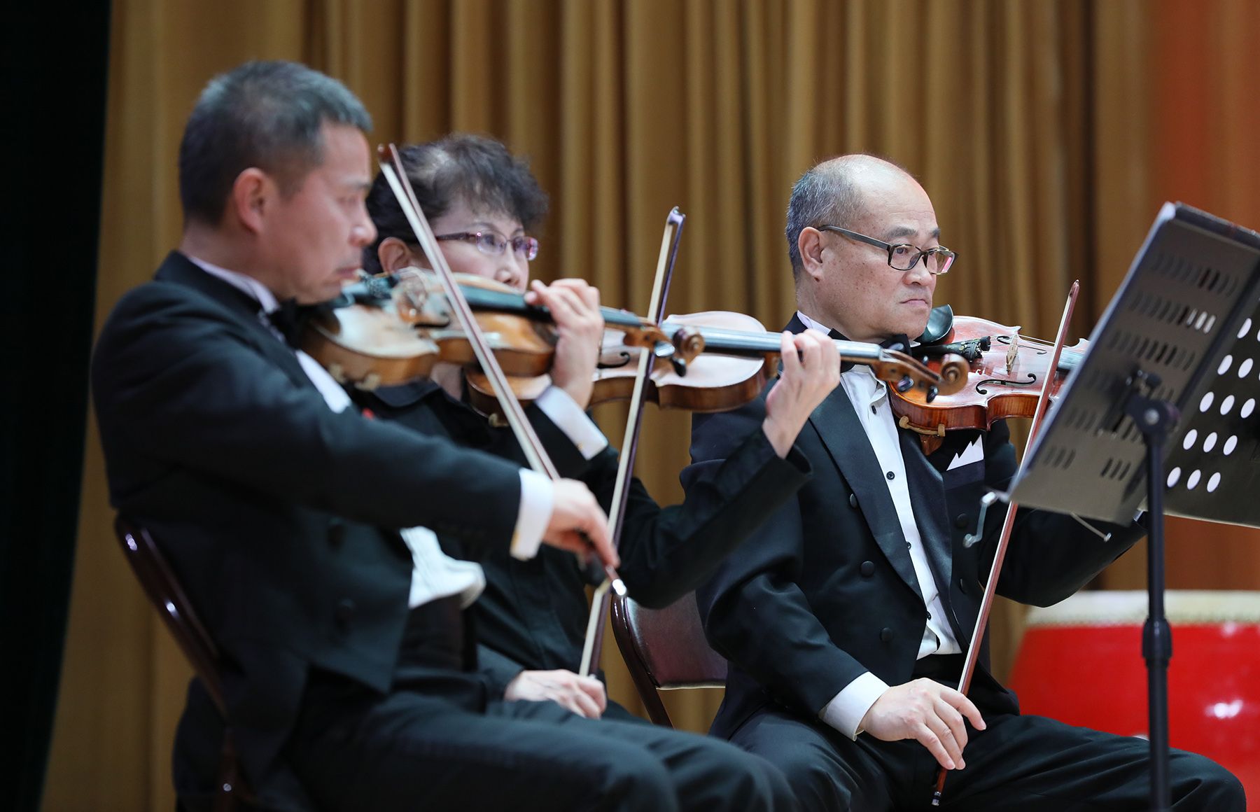 伴随着热烈欢快的《卡门序曲》,音乐沙龙正式拉开序幕。小提琴二重奏《我的祖国》以悠扬动听的旋律点燃听众的爱国情怀;世界名曲《第二圆舞曲》优雅神秘、《如歌的行板》舒缓优美、《蝙蝠序曲》华丽流畅;《红色娘子军》组曲铿锵有力、节奏鲜明,再现了娘子军战士的英雄气概和勇敢坚强;罗马尼亚民间舞曲《春天》、中国小提琴独奏曲《新疆之春》让现场观众感悟了中外民族乐曲的独特魅力;乐团女高音独唱《长江之歌》大气磅礴、震撼人心;《北京喜讯到边寨》以激情的旋律,把现场气氛推向高潮……乐团成员精湛的演奏技艺与丰沛的情感烘托,令现场观众沉浸在高雅艺术的海洋之中。