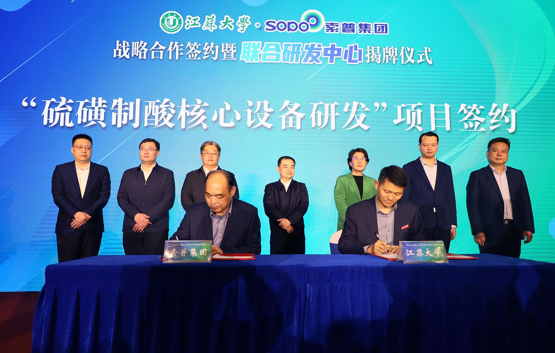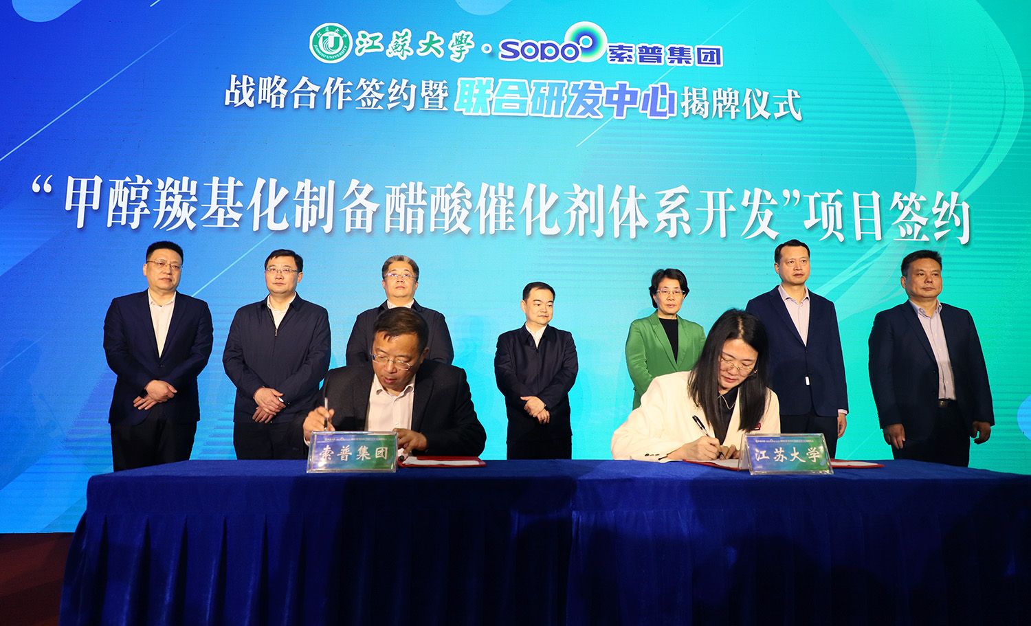 索普集团党委副书记、常务副总经理凌晨,开云电子入口_开云(中国)产学研合作处处长汪少华共同签订开云电子入口_开云(中国)-索普集团联合研发中心协议。