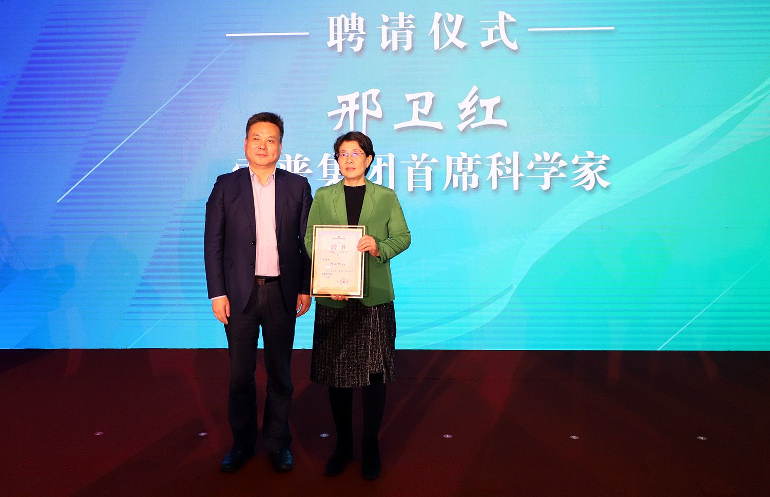 仪式上,镇江市国资委党委书记、主任周毅为邢卫红颁发索普集团首席科学家聘书。