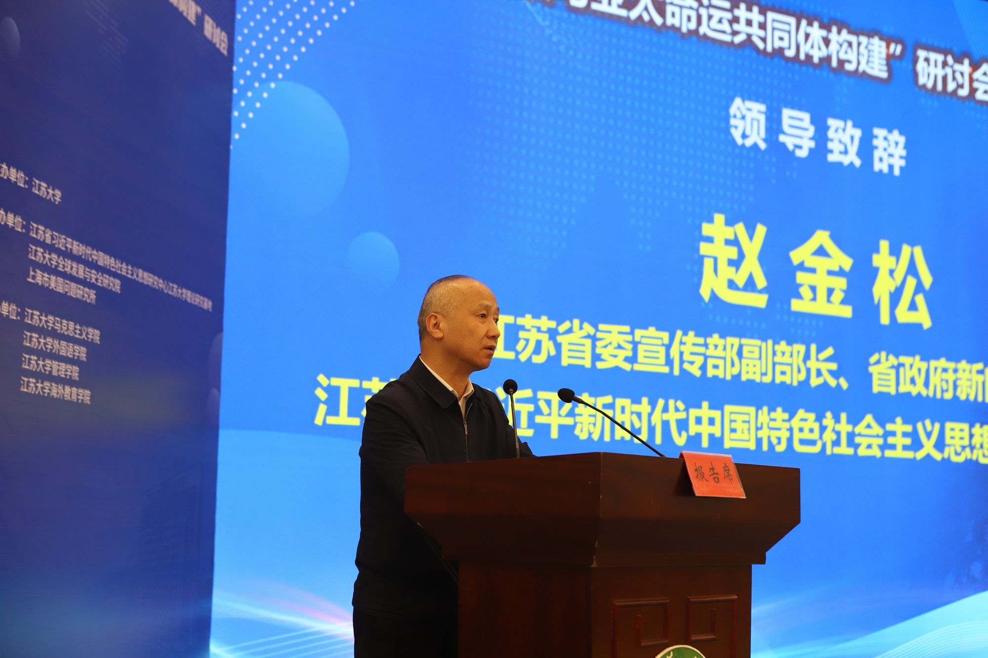 江苏省委宣传部副部长、省政府新闻办主任、省习近平新时代中国特色社会主义思想研究中心副主任赵金松认为,这次研讨会以“三大全球倡议”与亚太命运共同体构建为主题,体现了社科理论工作的高度自觉和责任担当,他希望大家准确把握历史方位、辩证认识和把握国内外大势、不断拓展全球视野、持续推动实践探索。