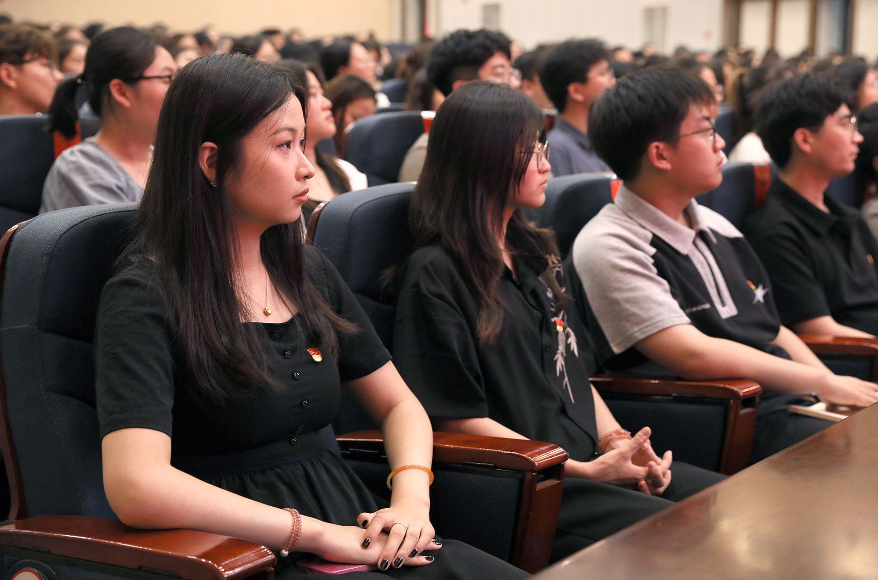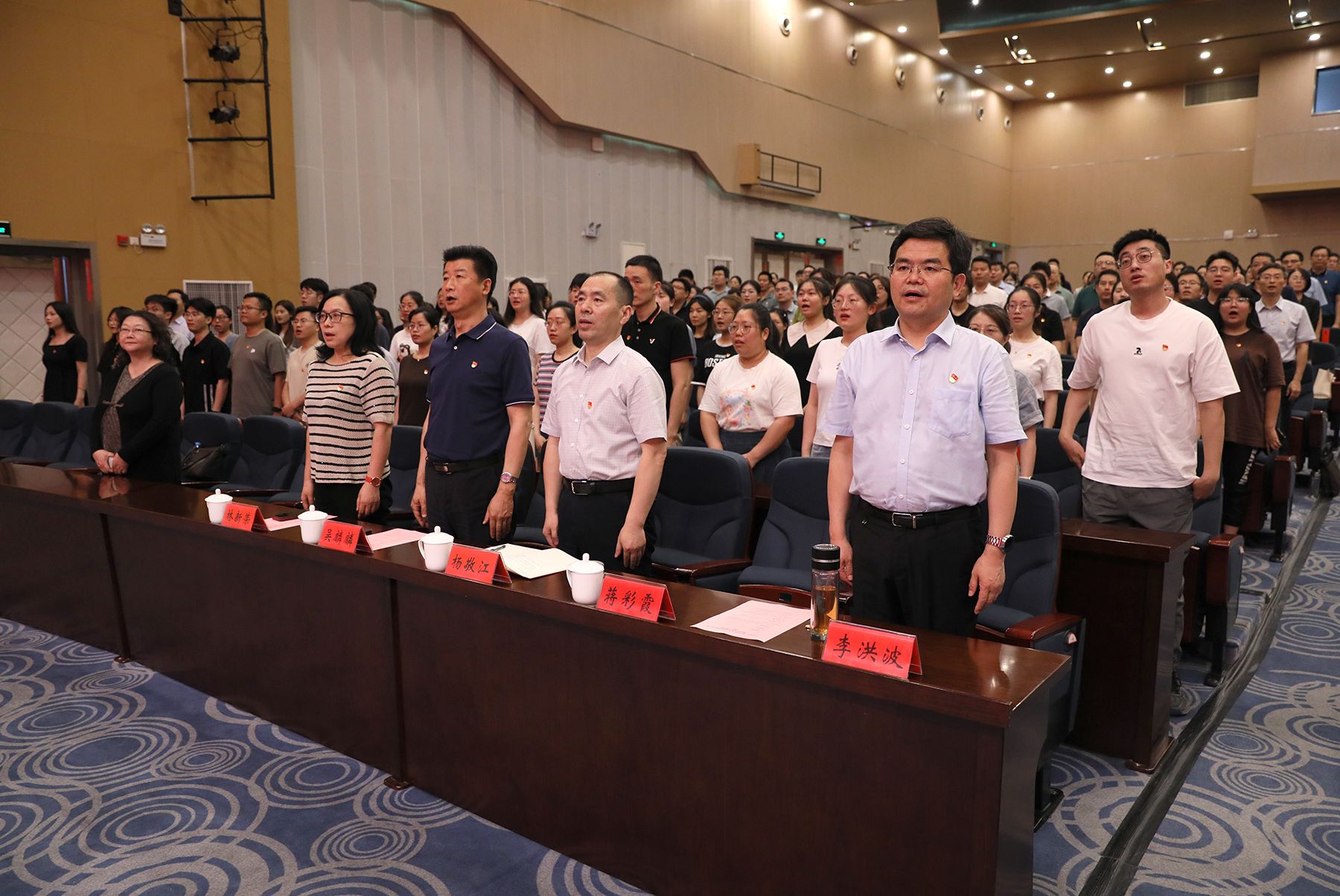 “光荣在党50年”党员代表,管理学院党委、财经学院党委、附属医院党委、机关党委教职工党员代表,新党员代表等400余人参加活动。(党委组织部)