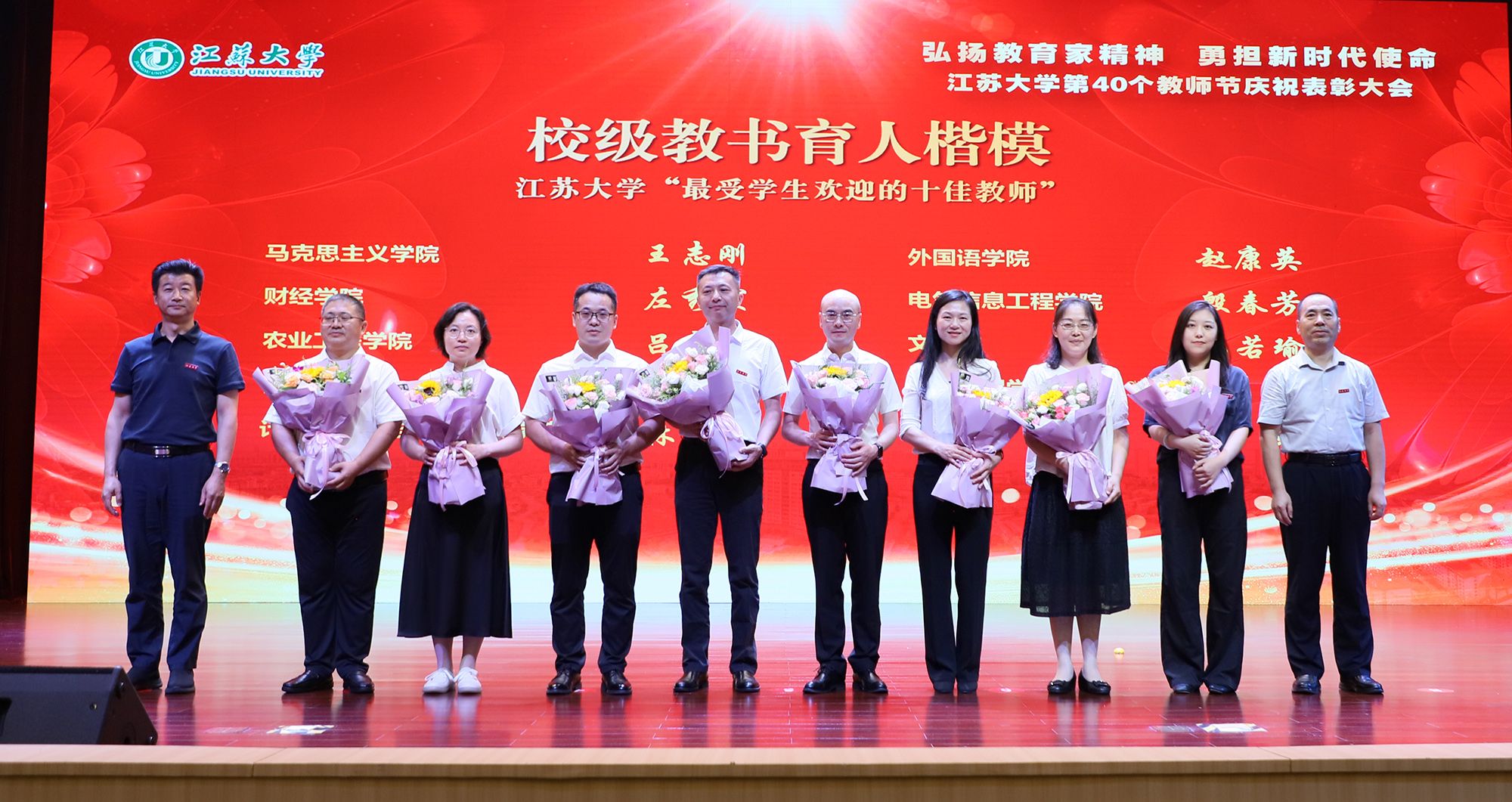 校党委常委、组织部部长杨敬江,校党委常委、宣传部部长、统战部部长吴麟麟为开云电子入口_开云(中国)“最受学生欢迎的十佳教师”颁奖。
