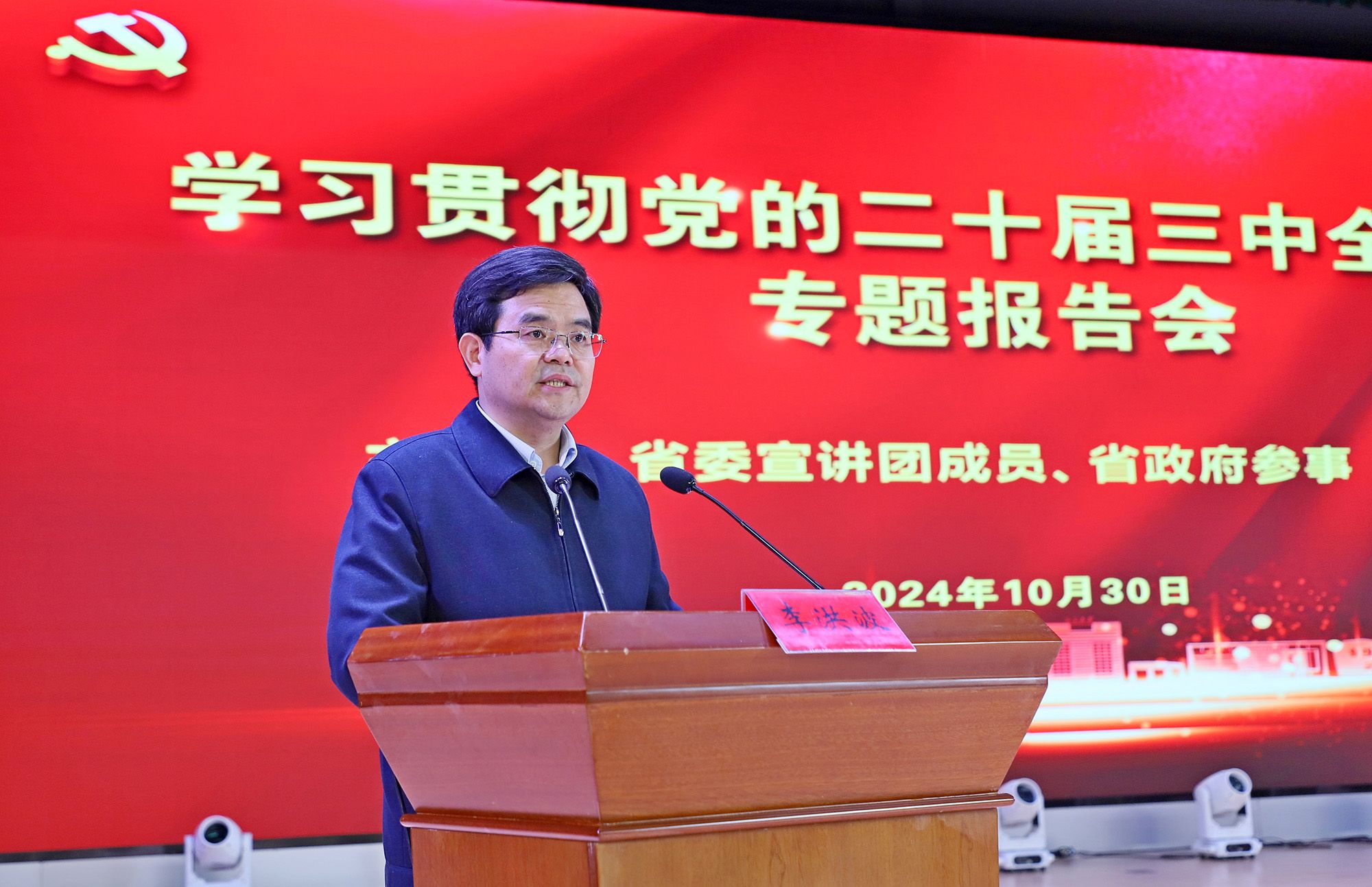 桑学成紧扣党的二十届三中全会精神,围绕习近平总书记在党的二十届三中全会上的重要讲话和全会审议通过的《中共中央关于进一步全面深化改革、推进中国式现代化的决定》,结合习近平总书记在中央党校(国家行政学院)省部级主要领导干部学习贯彻党的二十届三中全会精神专题研讨班开班式上的重要讲话,从深刻领会和把握全会的重大意义和主题,进一步全面深化改革的指导思想、总目标、重大原则、重大举措和根本保证,以及如何抓好全会精神和改革任务的贯彻落实等方面进行了系统解读和深入阐释。