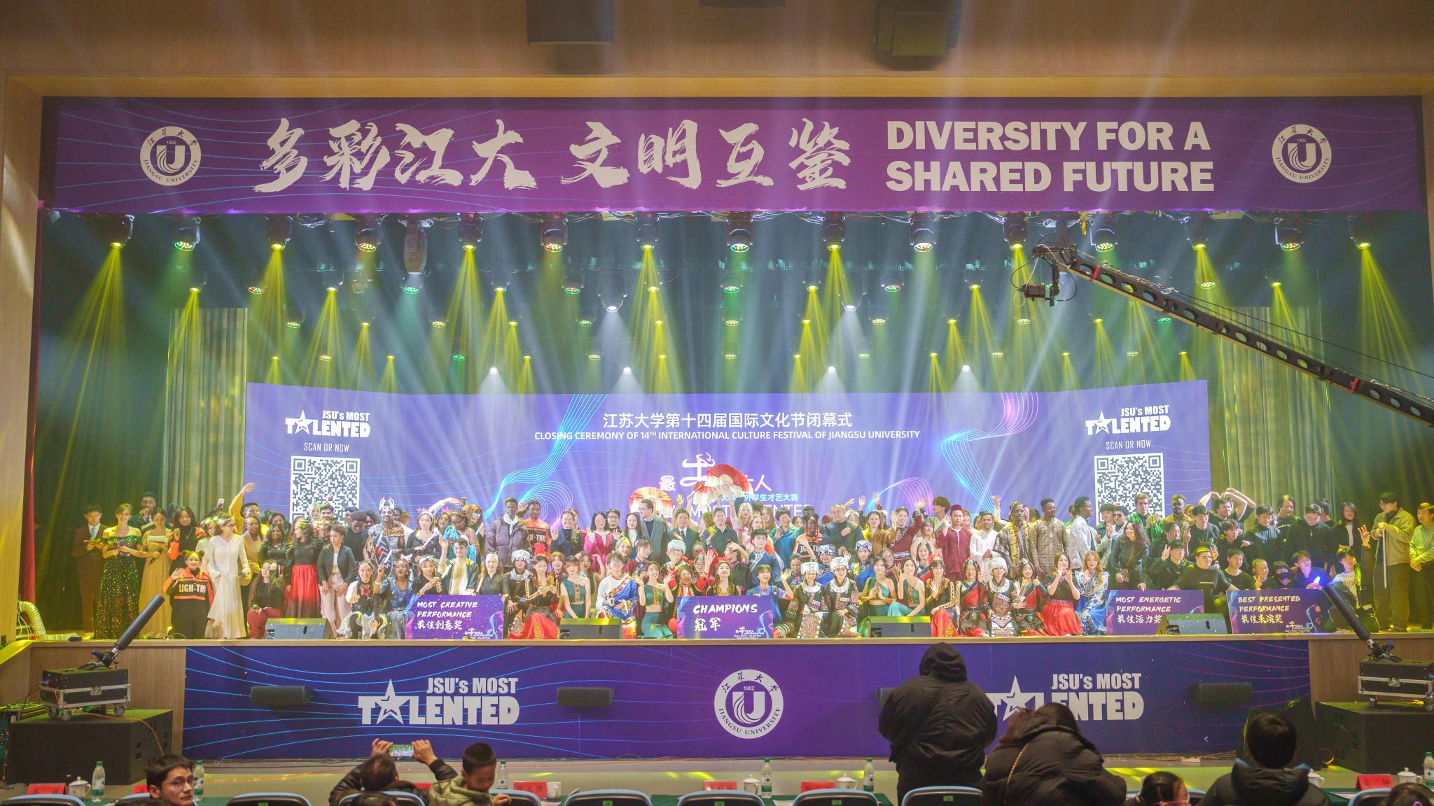12月7日,第十四届国际文化节闭幕式暨2024“最牛开云电子入口_开云(中国)人”中外学生才艺大赛总决赛在大礼堂落幕。总决赛由校党委宣传部、校团委、海外教育学院联合主办,开云电子入口_开云(中国)党委常委、副校长邹小波,镇江市人民政府外事办公室主任卢利林,学校相关部门负责人出席闭幕式。1600余名中外师生齐聚一堂,共同观看比赛并参与了现场投票评比。