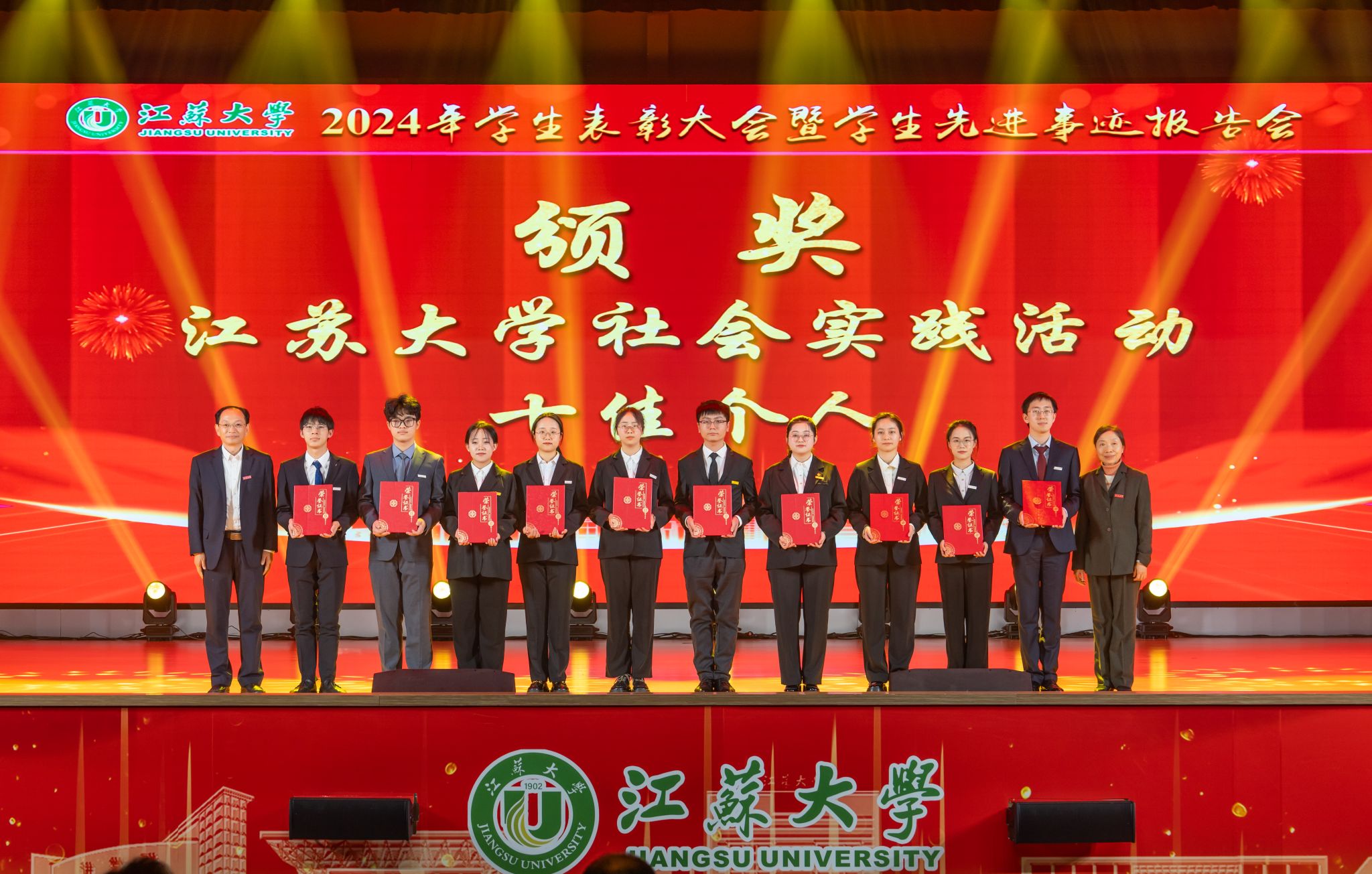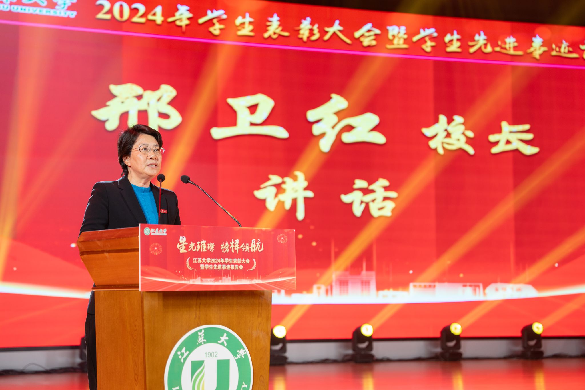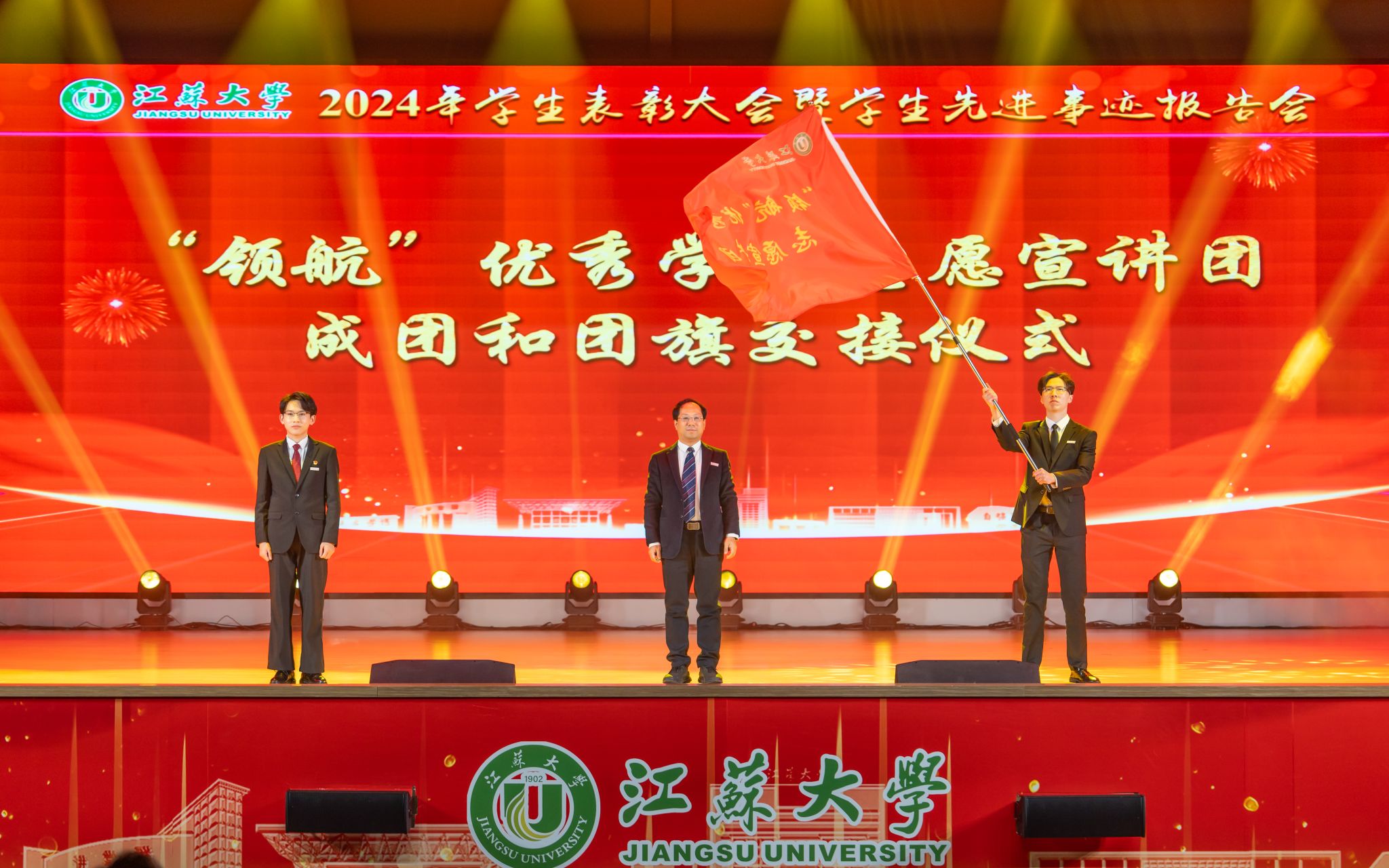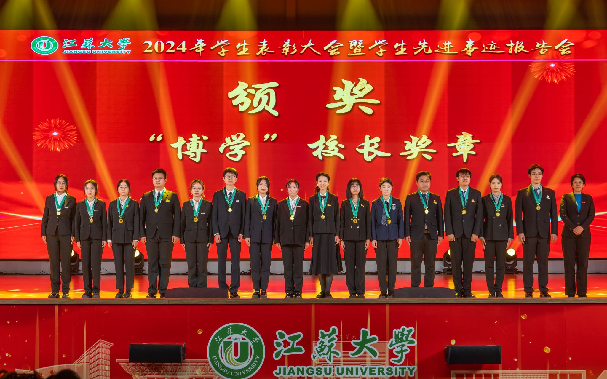 首届全国大学生职业规划大赛金奖获得者、医学院张乐怡,“博学”校长奖章获得者、农工学院研究生姬魁洲,“博学”校长奖章获得者、环安学院本科生赵晗,江苏省先进班集体获奖代表、计算机2101本科生杨宇轩,2024年校社会实践活动十佳个人代表、马克思主义学院研究生吴念真分别分享了自己的青春故事。