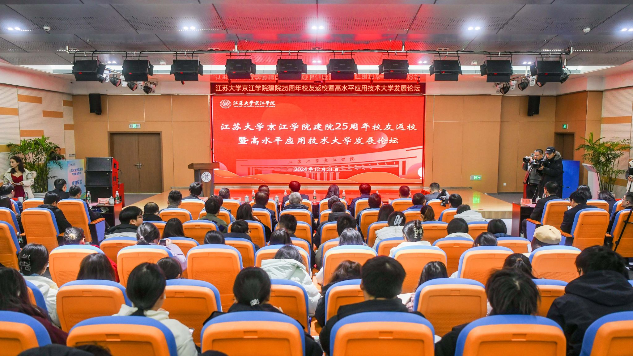 会前,与会来宾共同观看京江学院建院25周年院庆专题片《与你共“京”彩》。