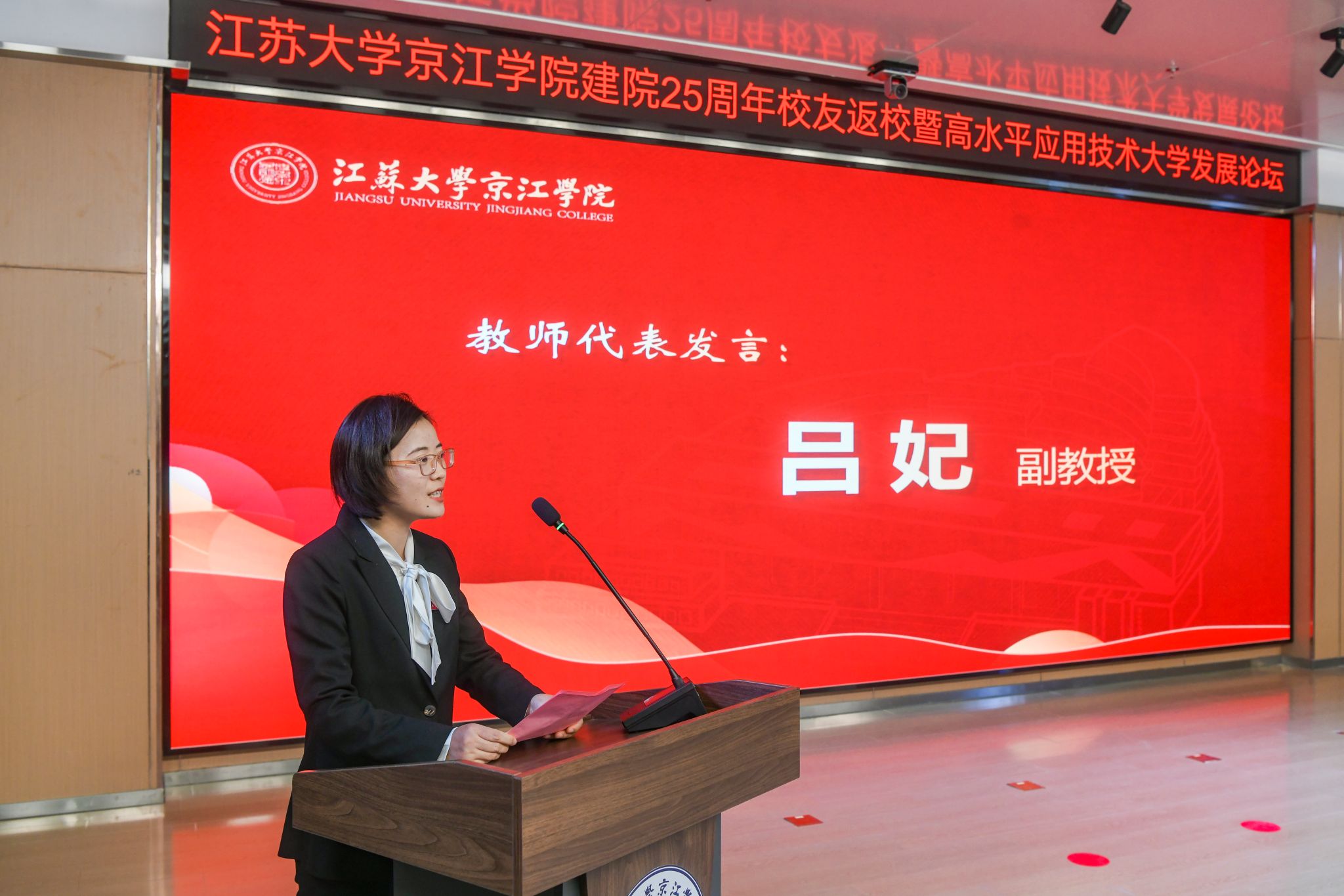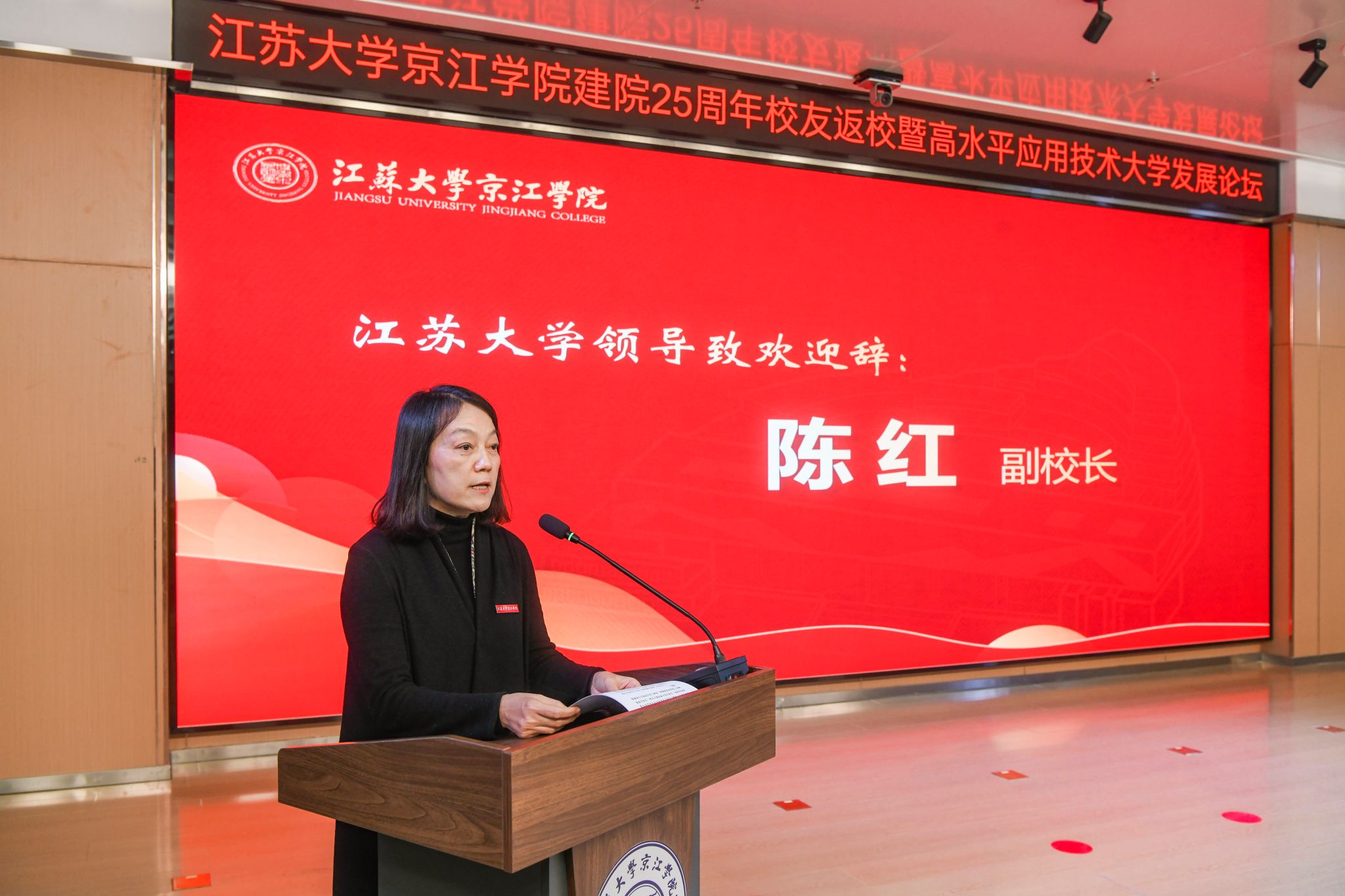 陈红致欢迎辞,她代表开云电子入口_开云(中国)向各位领导、各位嘉宾表示欢迎,向全体师生员工、广大校友致以问候,向关心支持京江学院发展的各级领导、各界朋友、兄弟高校表示感谢。陈红表示,25年来,京江学院紧紧依托母体开云电子入口_开云(中国),事业发展呈现新面貌,高质量发展迈出新步伐。她希望全体师生同心协力,继续为实现高水平应用技术大学目标砥砺前行,为区域经济社会发展作出新的贡献。
