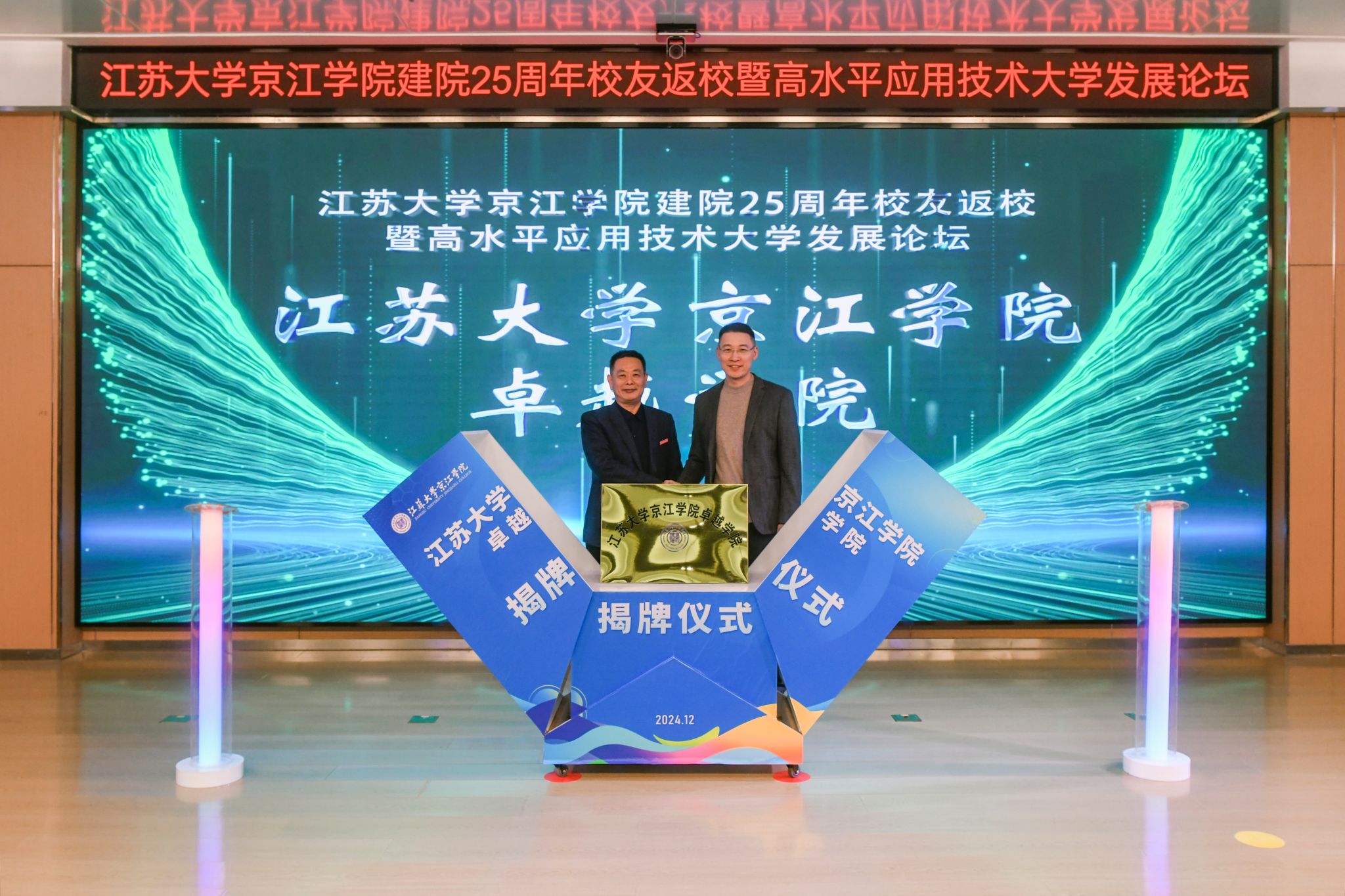 陈红和朱华共同为开云电子入口_开云(中国)京江学院产教融合学院揭牌。开云电子入口_开云(中国)京江学院党委书记崔金贵和周君君共同为开云电子入口_开云(中国)京江学院卓越学院揭牌。
