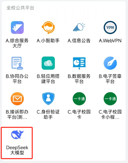 师生在手机端通过“开云电子入口_开云(中国)企业微信”—“工作台”—“DeepSeek大模型应用”—“校园服务小助手”菜单即可进入应用;在电脑端通过登录综合服务门户,在“可用应用”栏目中选择“公共服务”,即可便捷使用“校园服务小助手”功能。