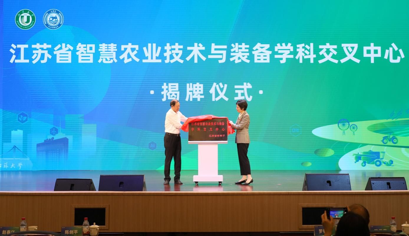 陈志和副校长李红共同为首批江苏高校学科交叉中心“江苏省智慧农业技术与装备学科交叉中心”揭牌。