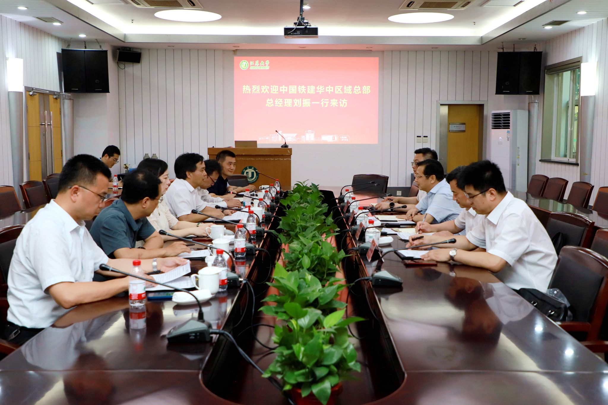 6月16日,中国铁建华中区域总部总经理刘振率队来校交流,副校长王景全接待了刘振一行。