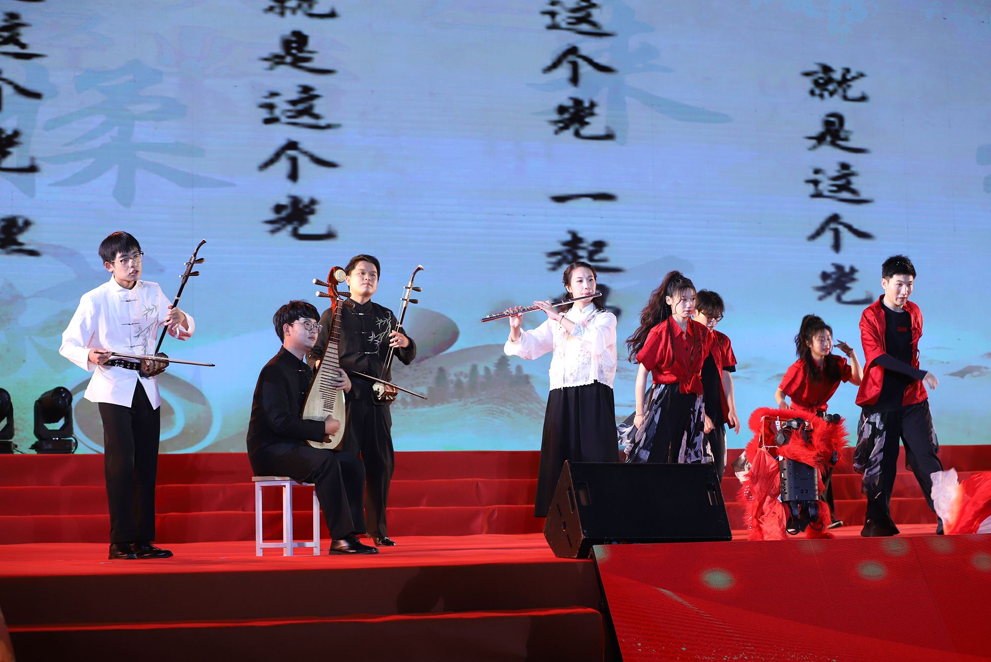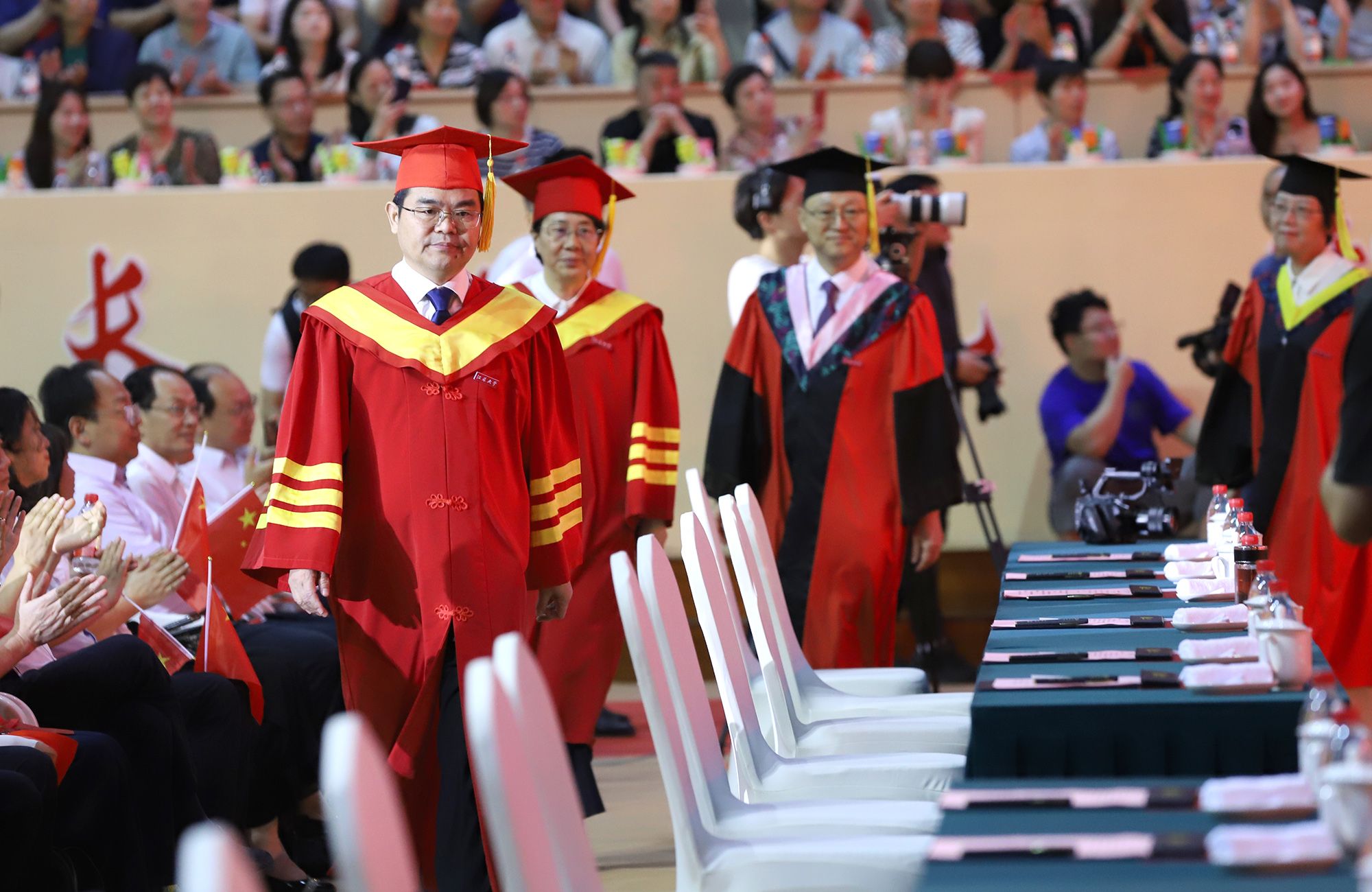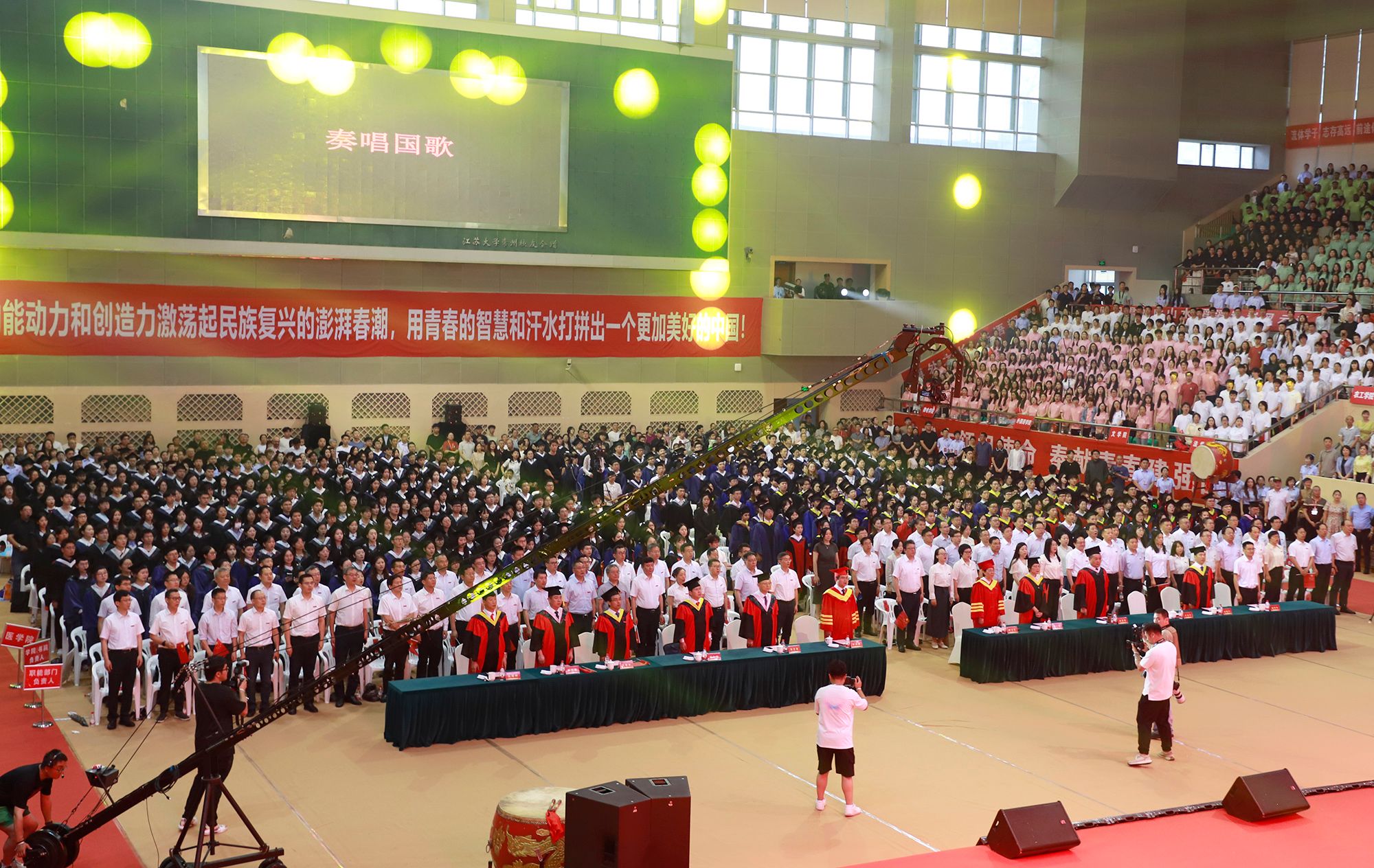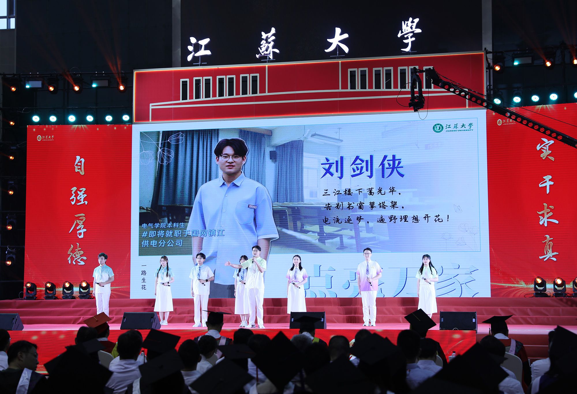典礼前,毕业生代表演唱了《凤凰花开的路口》《第一天》《本草纲目》《大中国》等暖场歌曲。