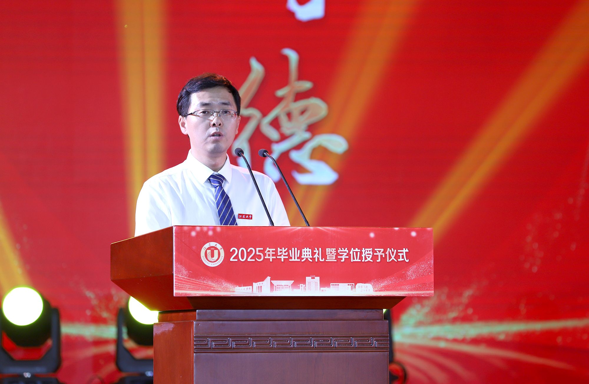 典礼上举行学位授予仪式。校领导、党委常委为授予博士学位、硕士学位、学士学位代表颁发学位证书并扶正流苏。
