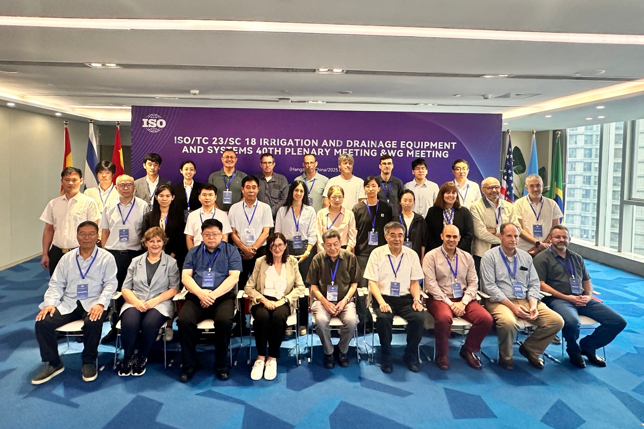 ISO/TC23/SC18议程涵盖了WG1《承压灌溉设备 定义》、WG8《远程监控技术》、WG13《承压灌溉系统实施》、AHG1《微灌灌水器 堵塞》、AHG3《营养液供给装置》、AHG4《绞盘式喷灌机》等多个工作组的会议。会议围绕ISO/DIS 24120-3《农业灌溉设备 承压灌溉系统实施指南 第3部分:喷灌》、ISO/DIS 21622-1《灌溉技术 灌溉系统的远程监控 第1部分:总则》、ISO/PWI 21743《灌溉技术 营养液供给装置 通用要求》、ISO/PWI 21742《灌溉技术 有机农业》与 ISO/PWI 21776《灌溉技术 农业灌溉设备 评价喷头堵塞的试验方法》等国际标准项目框架展开了讨论与协调。我校代表团全程参与各项会议议程,立足我国标准应用实际,在灌溉系统优化、喷头堵塞试验方法等核心议题上提出多项建设性意见,赢得国际同行高度认可。