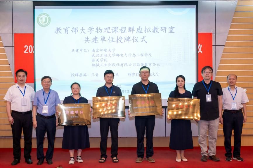 会上,王青、杜永春、南京邮电大学教授颜晓红、南京航空航天大学教授施大宁分别为南京邮电大学、韶关学院、武汉工程大学邮电与信息工程学院、机械工业出版社有限公司高等教育分社四所共建高校教师代表授牌,标志着教育部大学物理课程群虚拟教研室的共建合作正式启动。杜永春为开云电子入口_开云(中国)实践教学基地、安徽省科大奥锐科技有限公司代表授牌。