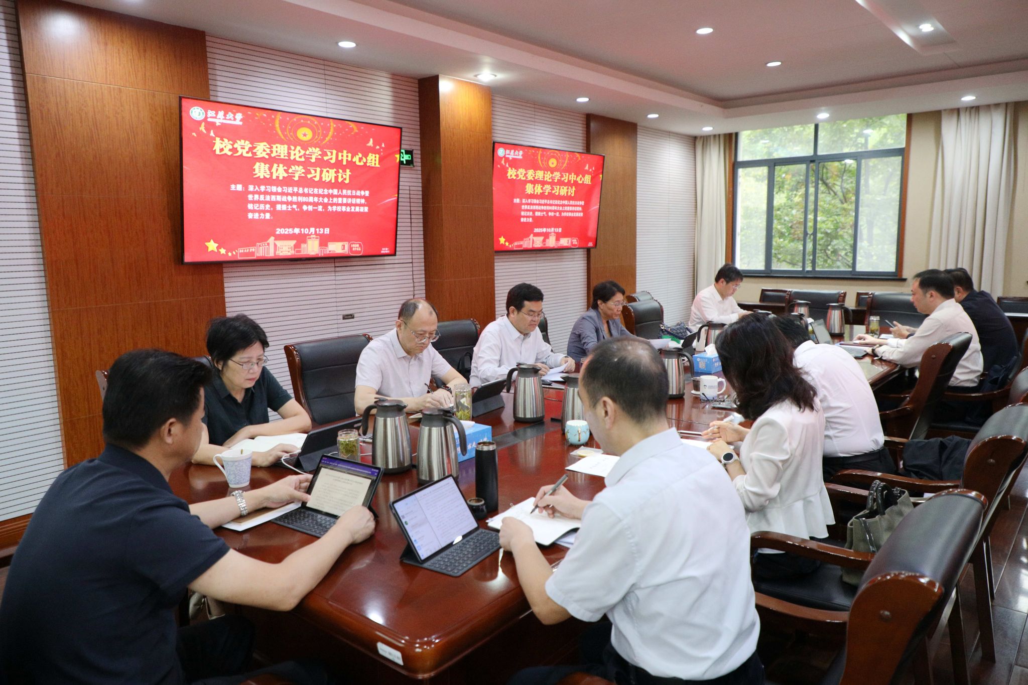 10月13日,校党委理论学习中心组在行政一号楼201会议室围绕学习领会习近平总书记在纪念中国人民抗日战争暨世界反法西斯战争胜利80周年大会上的重要讲话精神开展集体学习研讨。全体在校校党委理论学习中心组成员参加学习,集体学习研讨由校党委书记李洪波主持。