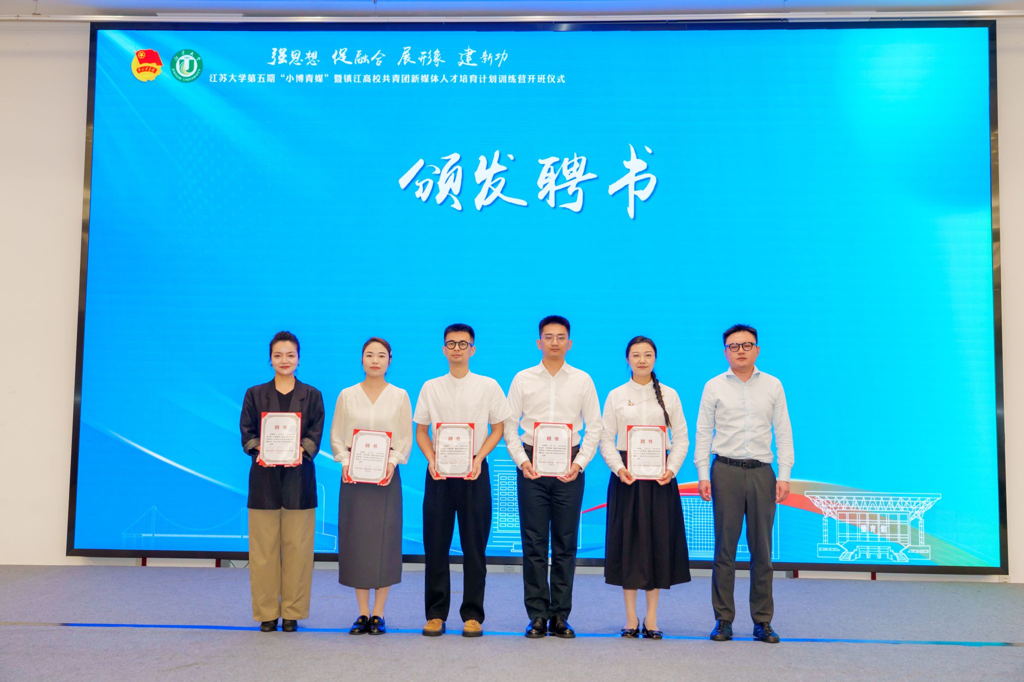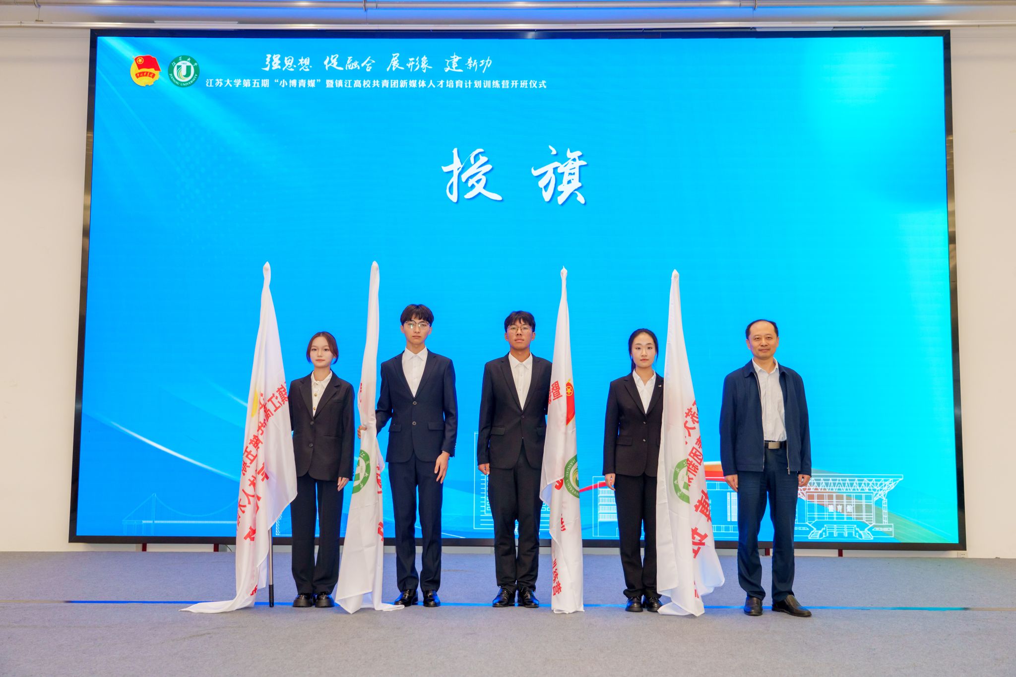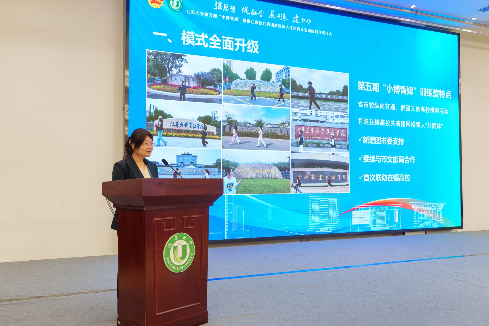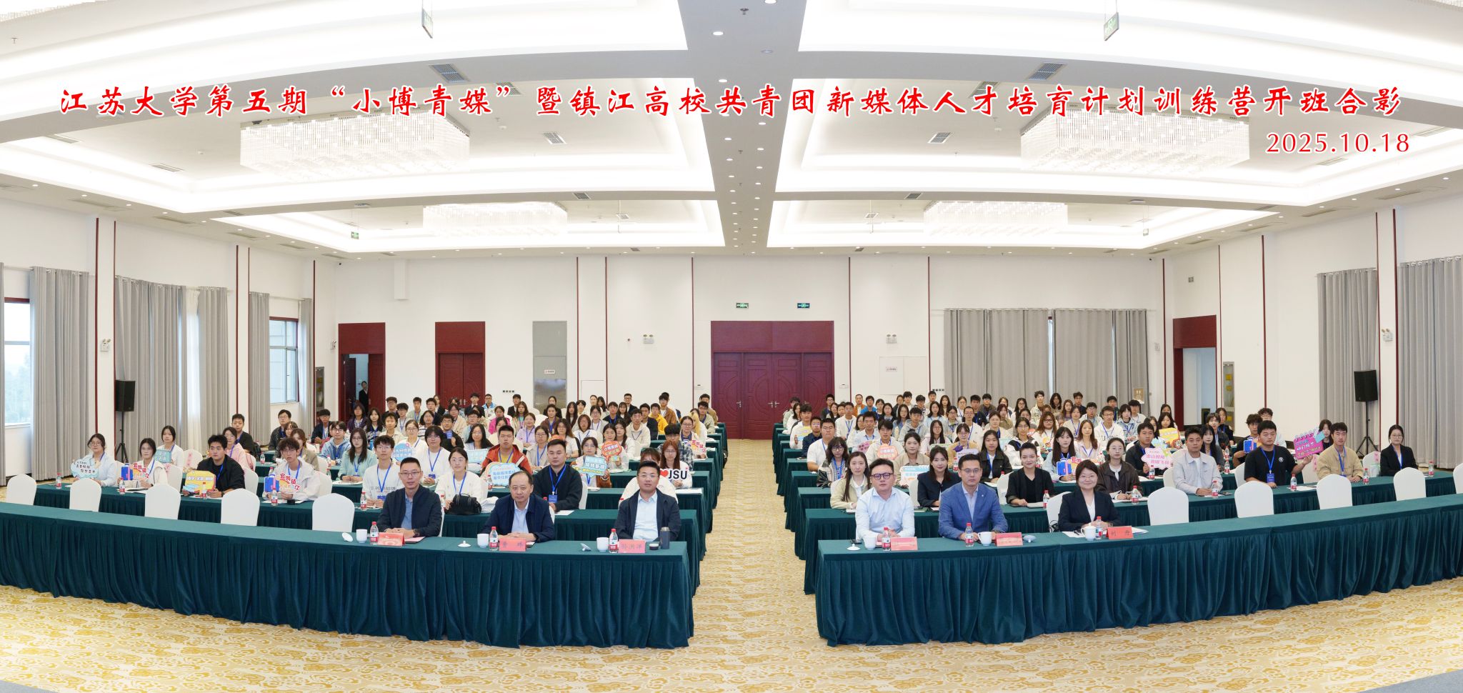 10月18日,由共青团开云电子入口_开云(中国)委员会、共青团镇江市委员会、镇江市文化广电和旅游局联合主办的开云电子入口_开云(中国)第五期“小博青媒”暨镇江高校共青团新媒体人才培育计划训练营在学校青教公寓多功能厅举行。共青团江苏省委新媒体发展中心主任孙洪洋,共青团镇江市委书记杜剑,镇江市文化广电和旅游局党委委员、副局长曹玮,校团委书记张永强,共青团镇江市委副书记徐加伦等出席活动,训练营班主任、朋辈指导员及9所在镇高校师生代表约150人参加活动。会议由校团委副书记刘丹主持。