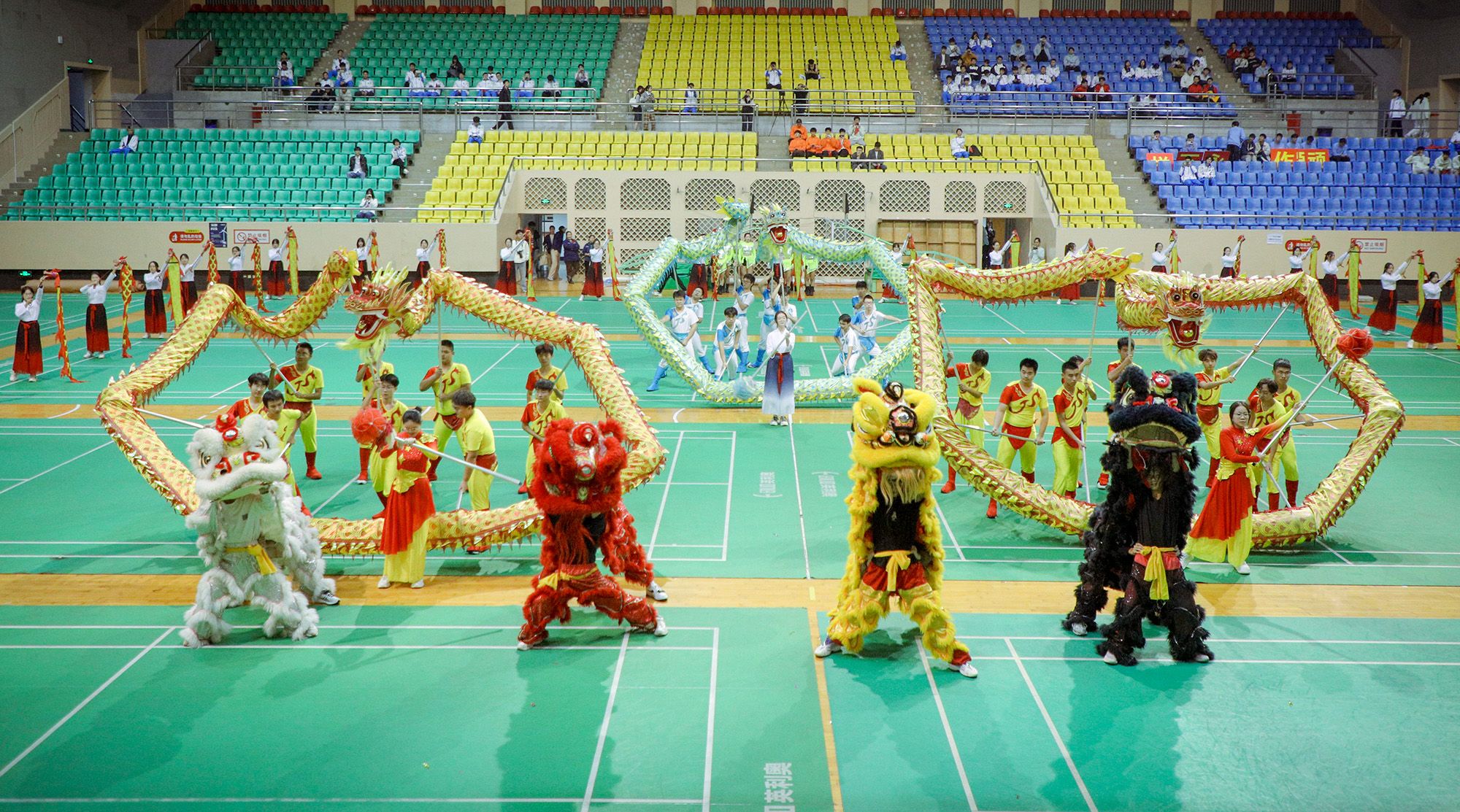 开幕式上,师生表演了舞龙舞狮、啦啦操和歌曲联唱等文体节目。