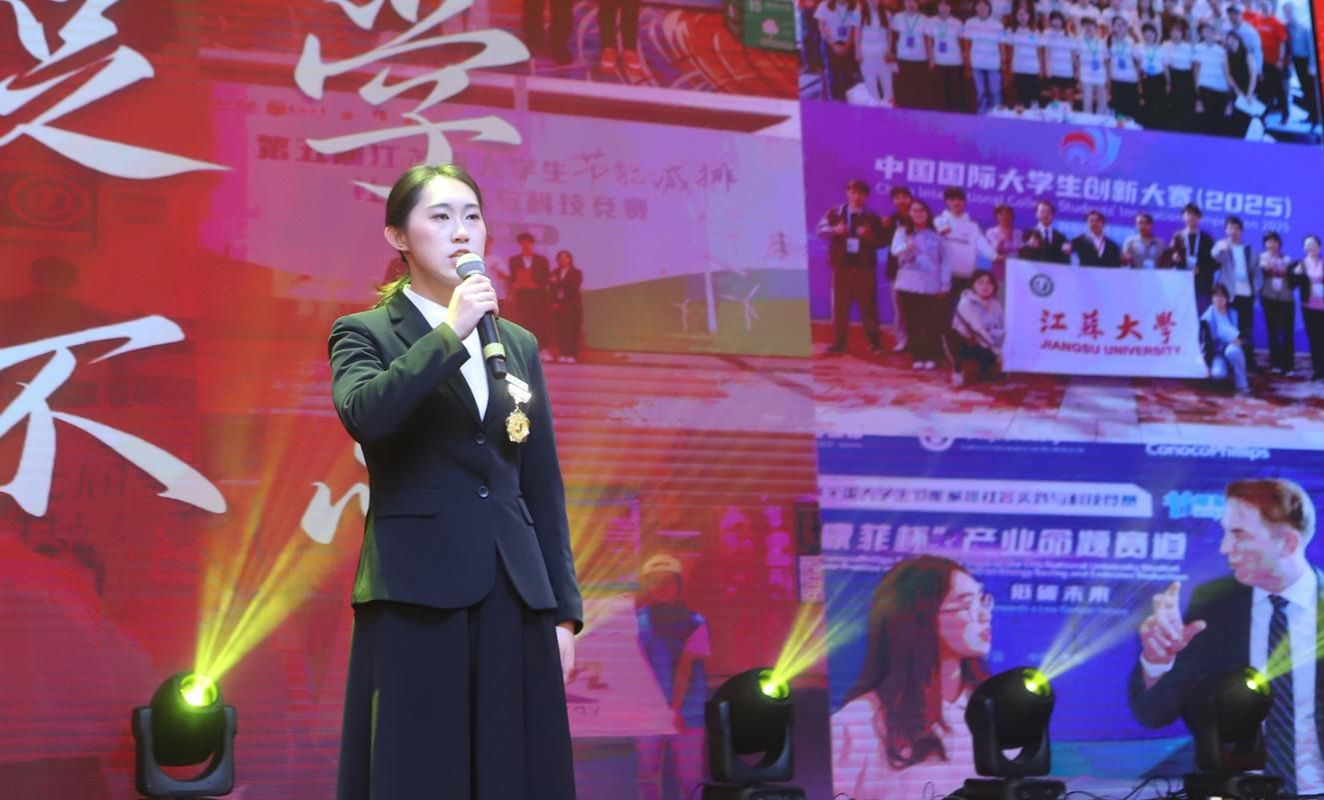 “博学”校长奖章获得者、能源与动力工程学院新能源科学与工程专业2022级本科生许欢、“求是”校长奖章获得者、电气信息工程学院农业电气化专业2022级本科生罗王飞分别分享了奋斗成长故事。