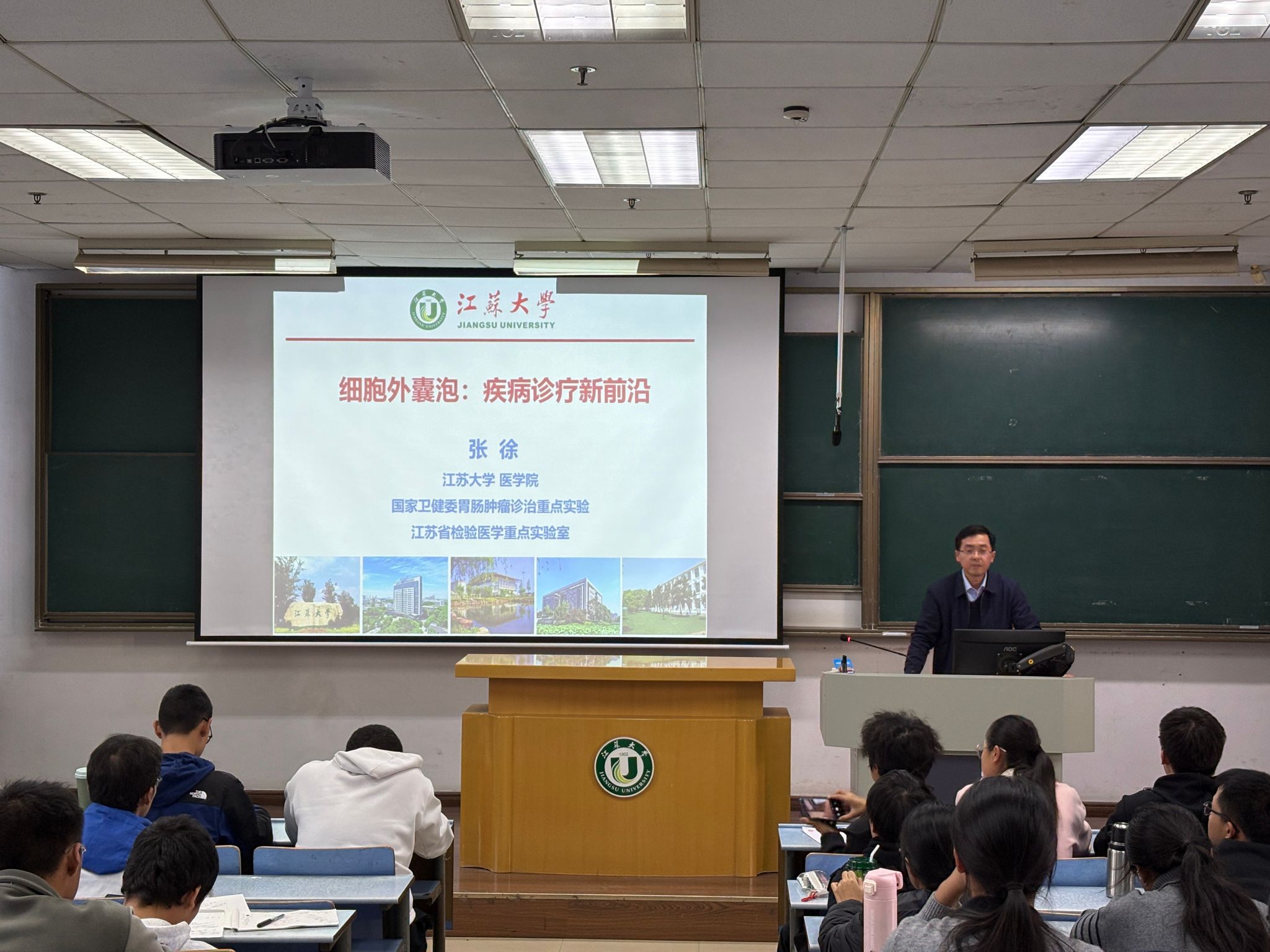 近日,本学期首次开设的校公选课“科技前沿探秘”结课。课程面向全体本科生开放,邢卫红、袁寿其、邹小波、王景全、蔡英凤、梅强等12位相关领域专家担任主讲嘉宾,课程内容涵盖多个科技前沿领域,采用“现场讲授+线上直播”双线融合教学模式,为学生打造跨学科、高规格的科技盛宴。