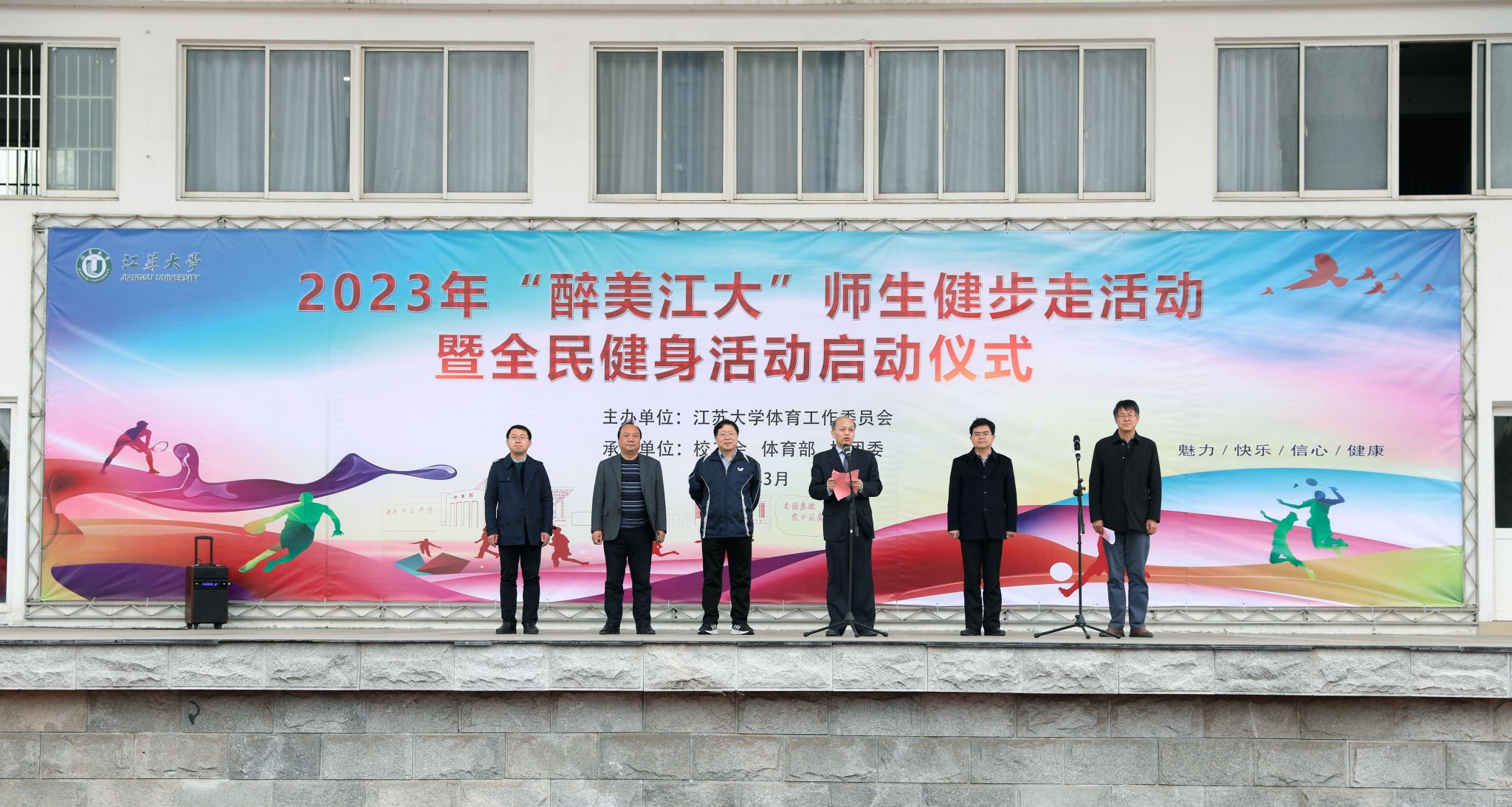 3月29日,2023年“醉美开云电子入口_开云(中国)”师生健步走活动暨全民健身活动启动仪式在东山操场举行。校长颜晓红、校党委副书记李洪波、副校长田立新出席启动仪式。