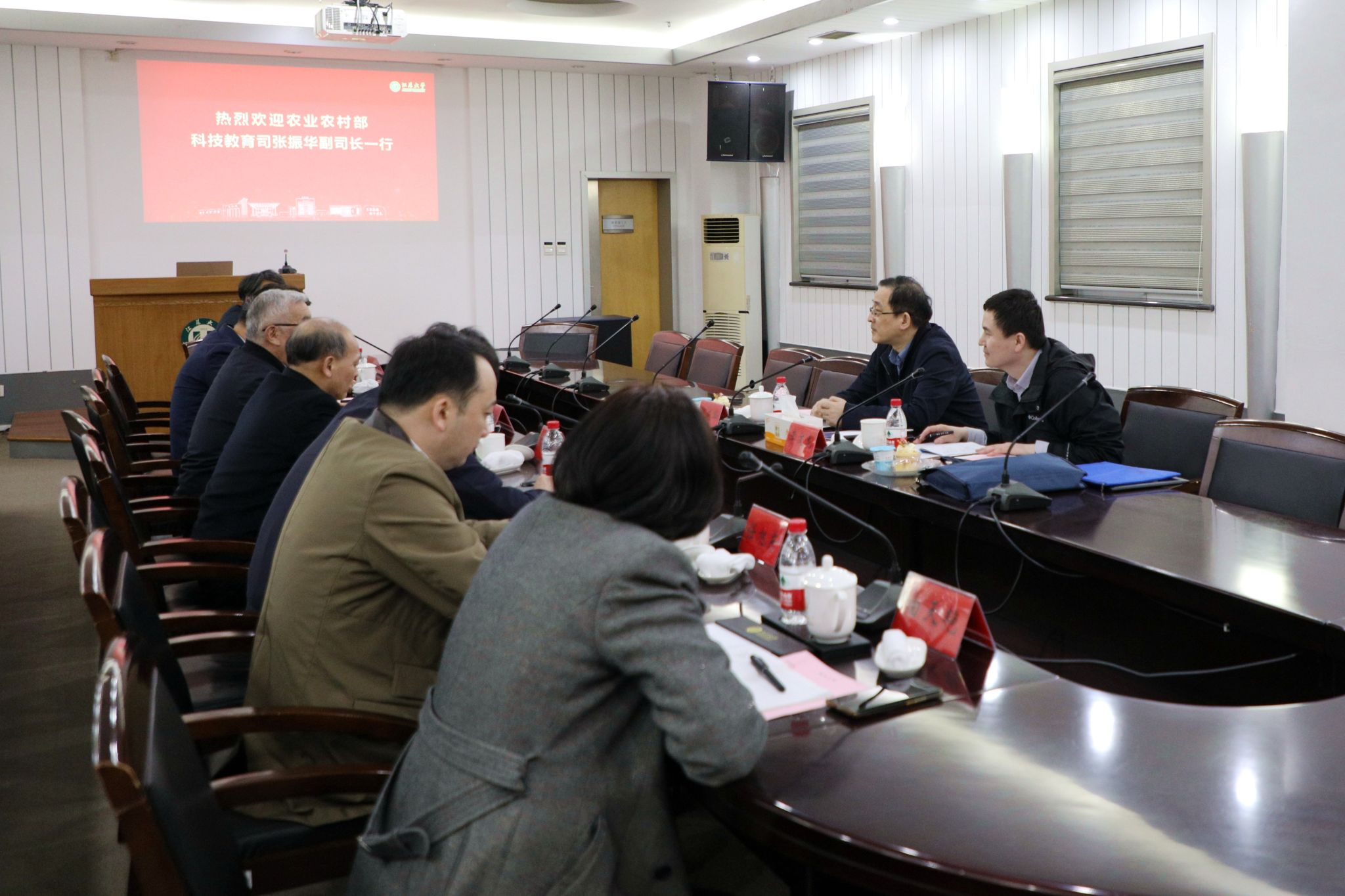 3月30日,农业农村部科教司张振华副司长来校调研,科技教育司产业技术处副处长李文龙陪同调研。校长颜晓红、中国工程院院士陈学庚、副校长全力接待调研一行。