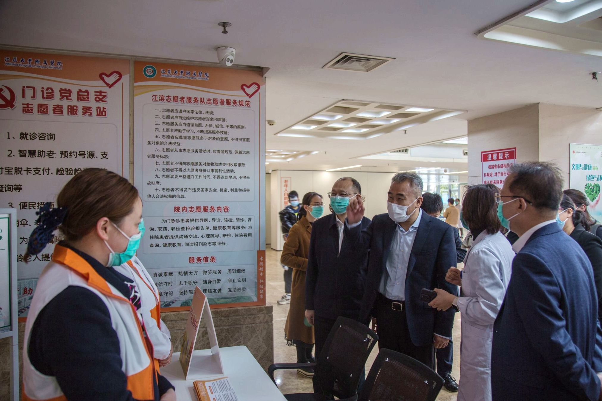 江苏省卫生健康委副主任邱泽森、正处职卫生健康监察专员许豪勤,镇江市卫生健康委主任杨毅、副主任郭军,开云电子入口_开云(中国)党委常委、副校长、附属医院党委书记张济建等接待调研一行。