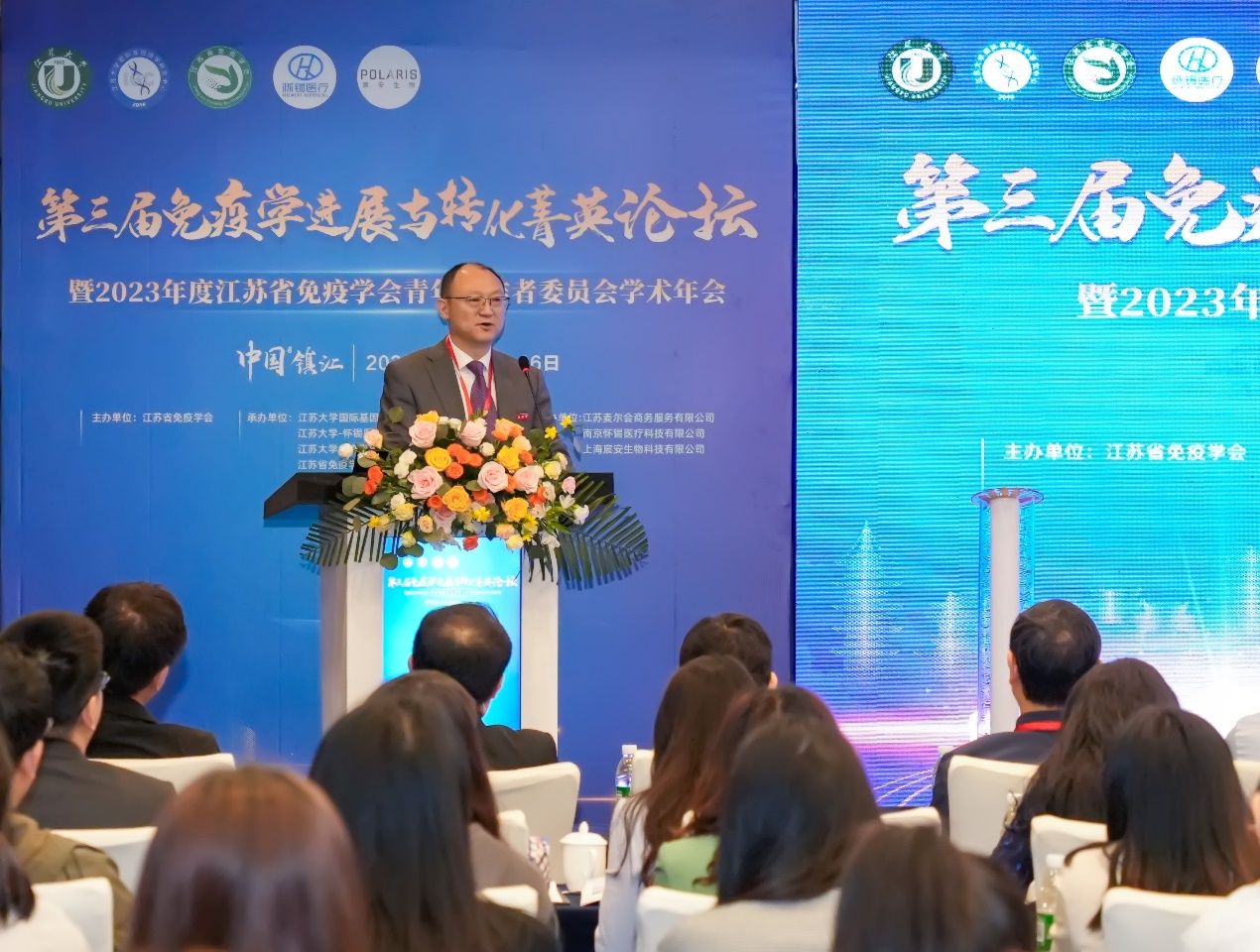 开幕式由江苏省免疫学会副理事长朱一蓓教授主持。江苏省免疫学会理事长许化溪教授、中国免疫学会青年工作者委会副主任委员靳津教授、开云电子入口_开云(中国)副校长张济建教授在大会上致辞。开云电子入口_开云(中国)—怀锡医疗科技有限公司、开云电子入口_开云(中国)—辰安生物科技有限公司校企合作启动。