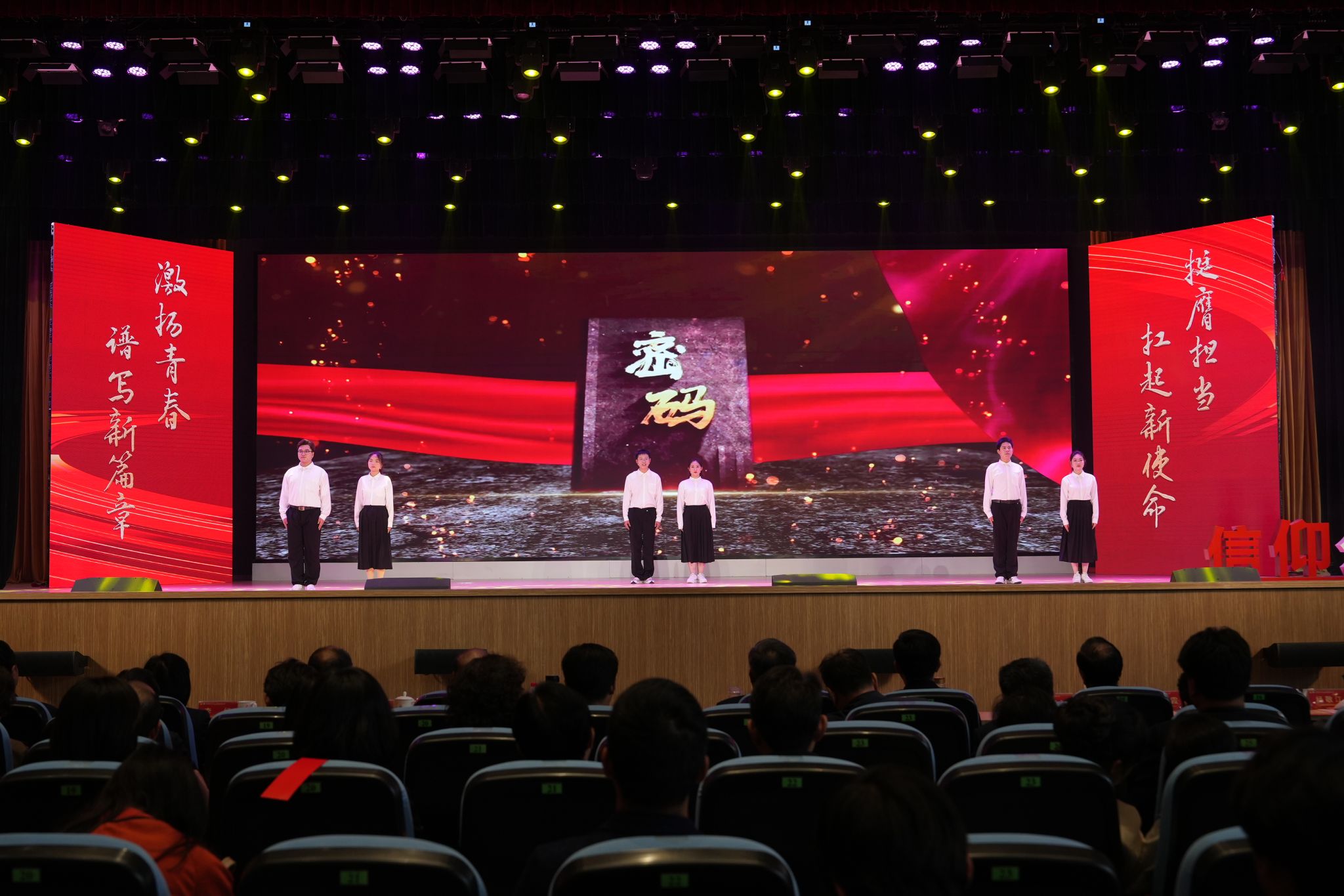 牢记嘱托跟党走,感恩奋进创一流 。4月26日,2023年开云电子入口_开云(中国)“五四”颁奖典礼暨第八届青年师生信仰公开课在校本部大礼堂举行。