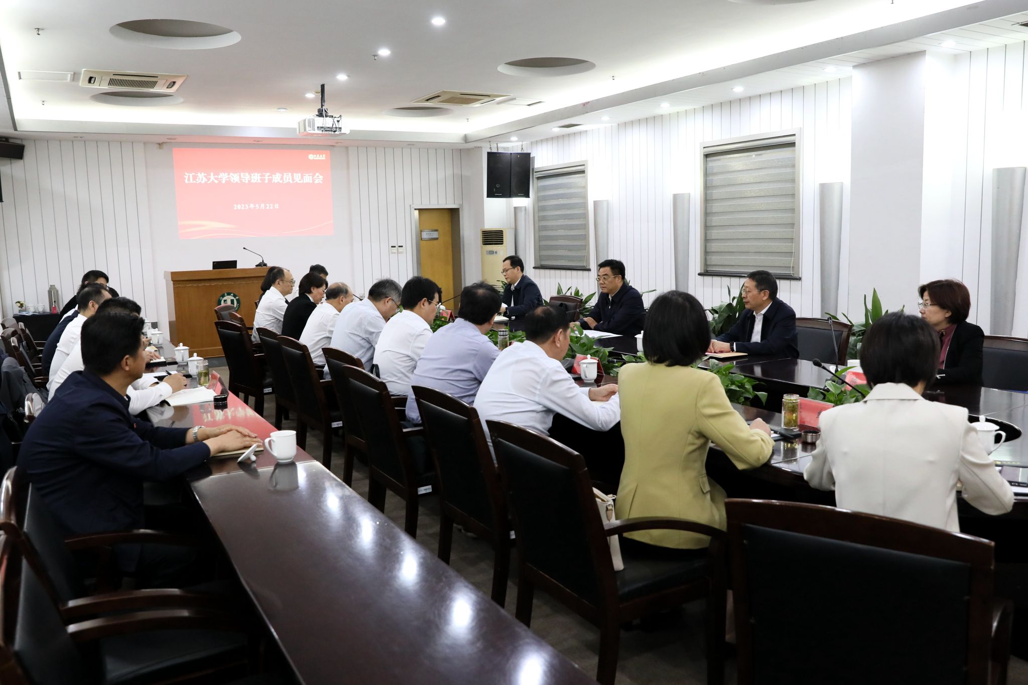 5月22日下午,学校在小礼堂召开全校干部大会,宣布省委关于校党政正职调整的决定。省委组织部副部长季振华,省委教育工委副书记徐子敏,镇江市委常委、组织部部长张娟,省委组织部干部五处副处长滕凯,省委教育工委组织处处长陈艳,镇江市委组织部副部长、市委党建办主任、市公务员局局长蒋建中出席大会。学校新老领导班子成员,校党委委员、纪委委员,全体处级领导干部,学校组建以来退任的校级正职老同志、近5年退任的校级副职老同志,区级及以上党代表、人大代表、政协委员,各民主党派主要负责人,具有高级专业技术职务人员代表等参加会议。会议由袁寿其同志主持。
