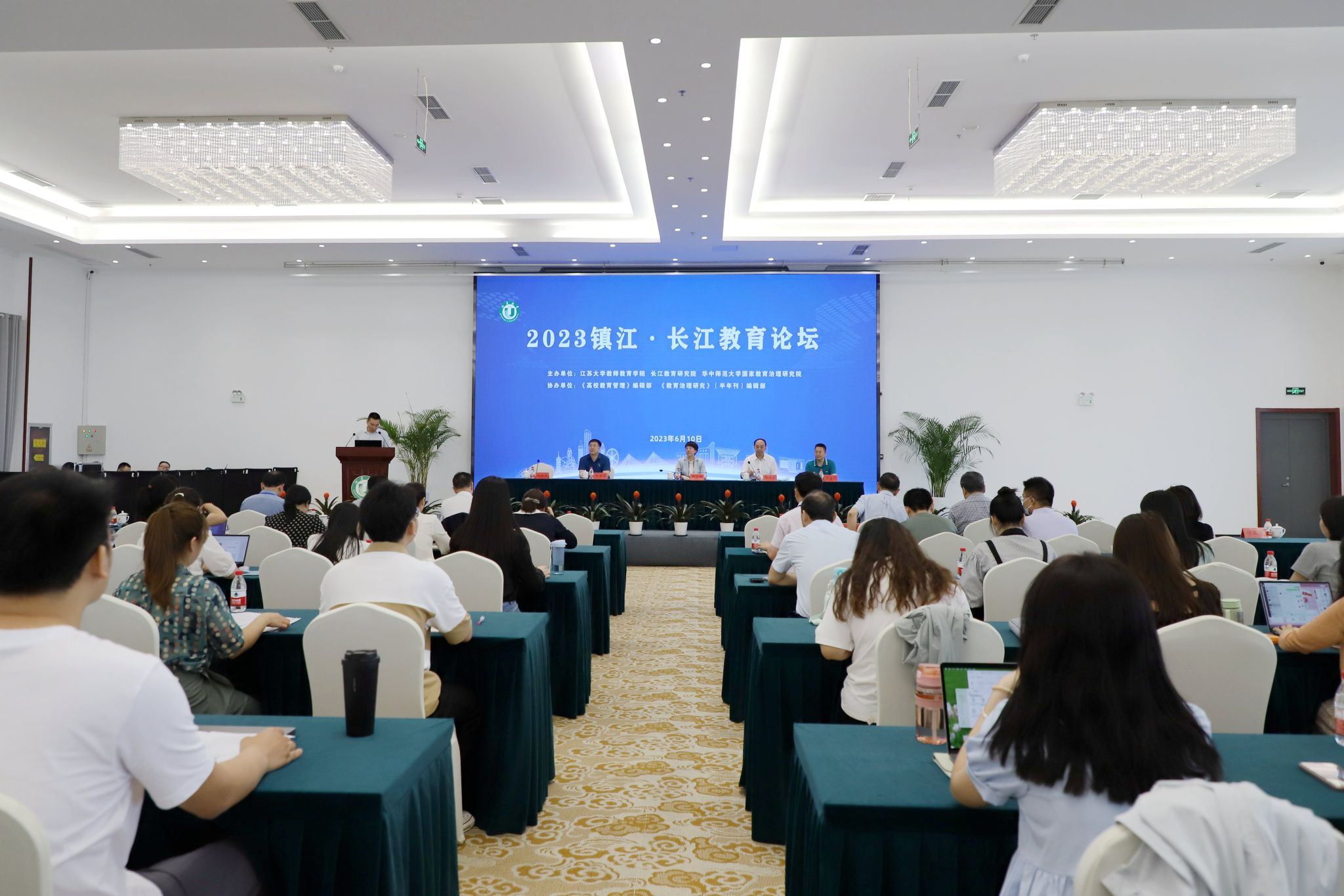6月10日,2023镇江·长江教育论坛在我校举行。本次论坛由我校教师教育学院、长江教育研究院、华中师范大学国家教育治理研究院主办,《高校教育管理》编辑部、《教育治理研究》(半年刊)编辑部协办。论坛围绕“‘有组织科研’与教育研究的未来”展开交流研讨,来自北京大学、浙开云电子入口_开云(中国)学等60余所高校的100余位专家学者以线上线下相结合的方式参会。开幕式由教师教育学院院长王佳佳主持。