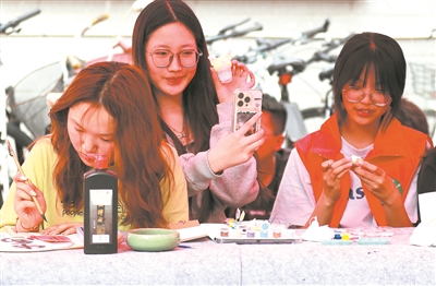 为让社区文化生活锦上添花,求知书院美术学、环境艺术设计专业学生开展了校园写生、色彩涂鸦、书法篆刻活动。工业设计专业硕士研究生李直澄创作了“万物共悦”主题的井盖涂鸦作品,她说:“我很享受这种艺术表达方式,感觉我们的生活环境更有温度了。”