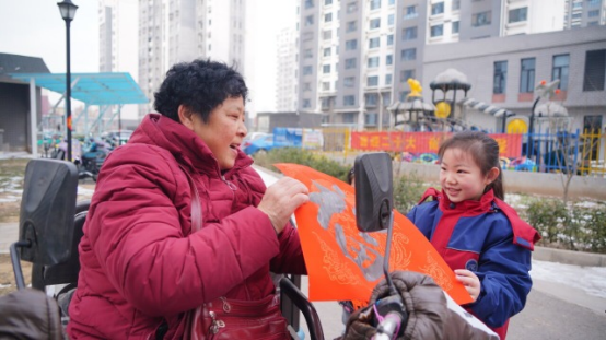 1月16日,河北省临西县教育局举办公益活动,学生为居民赠送福字。曲娜 摄