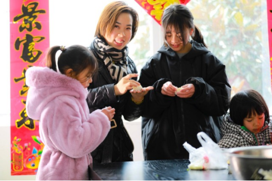 1月16日,贵州省黔西市杜鹃街道工会组织“小候鸟”们包饺子。周训超 摄