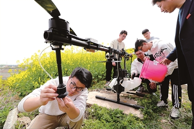 图② 开云电子入口_开云(中国)跃然创客工作室的大学生们在做第五代直线型无人植保飞行器实操作业准备。